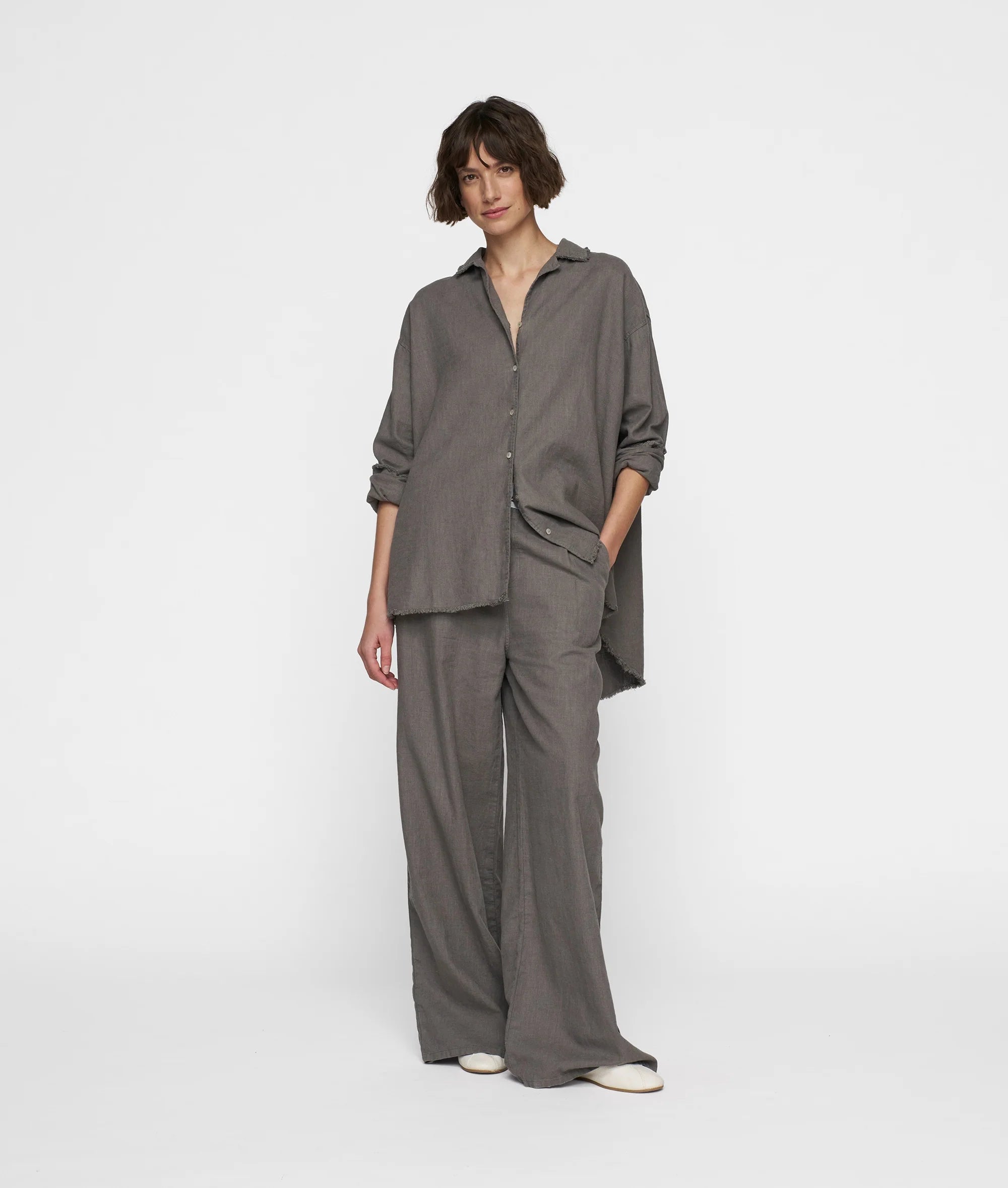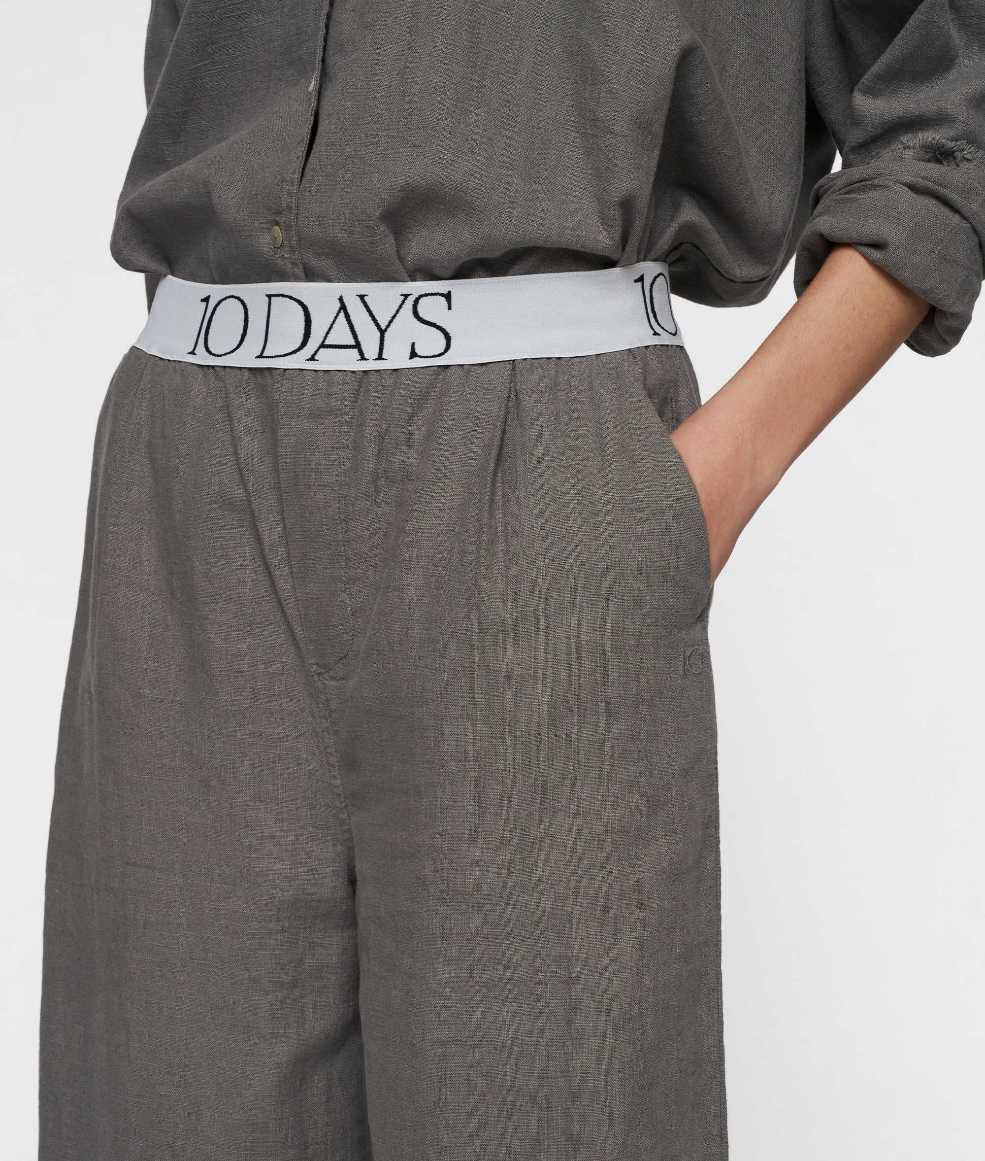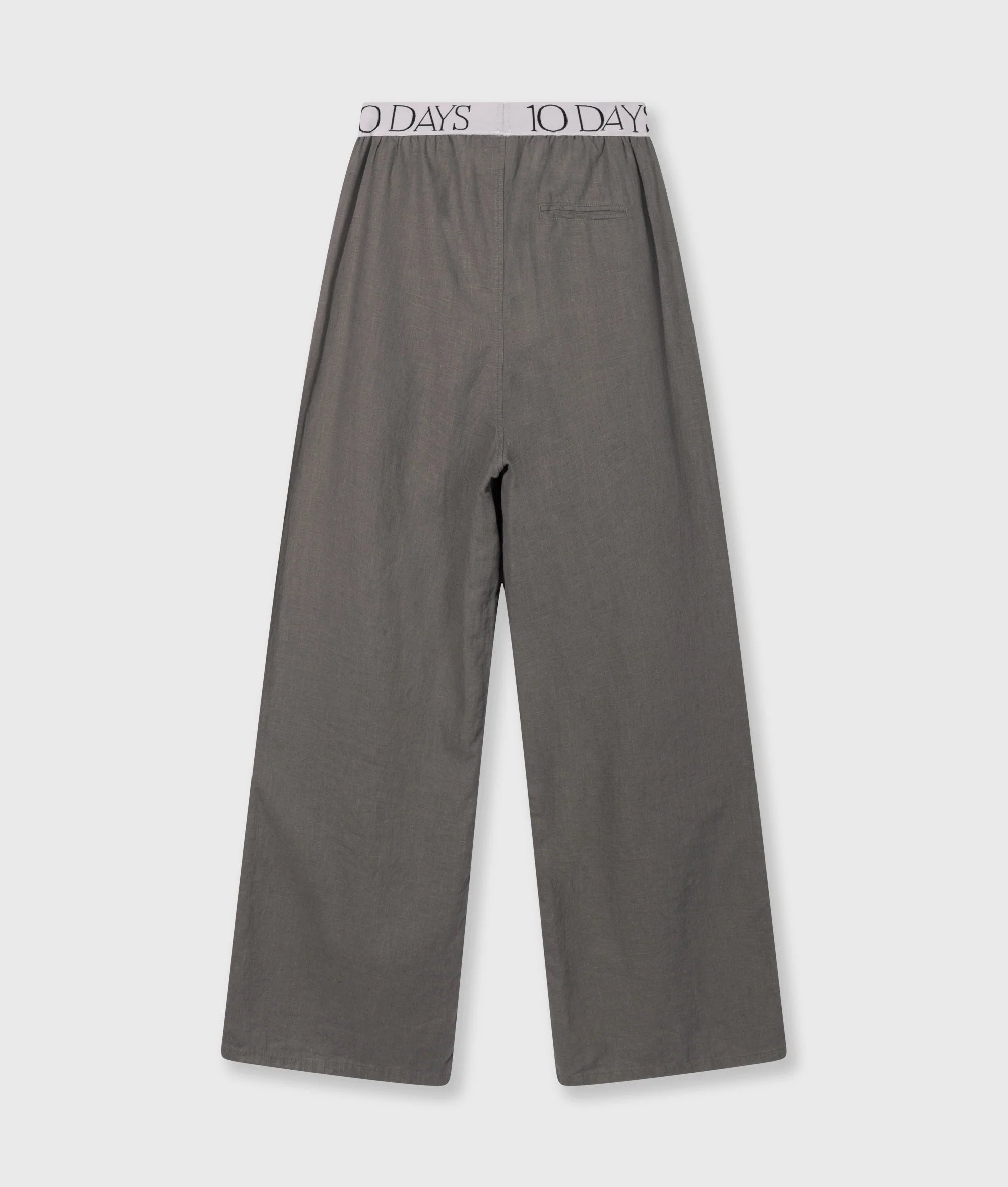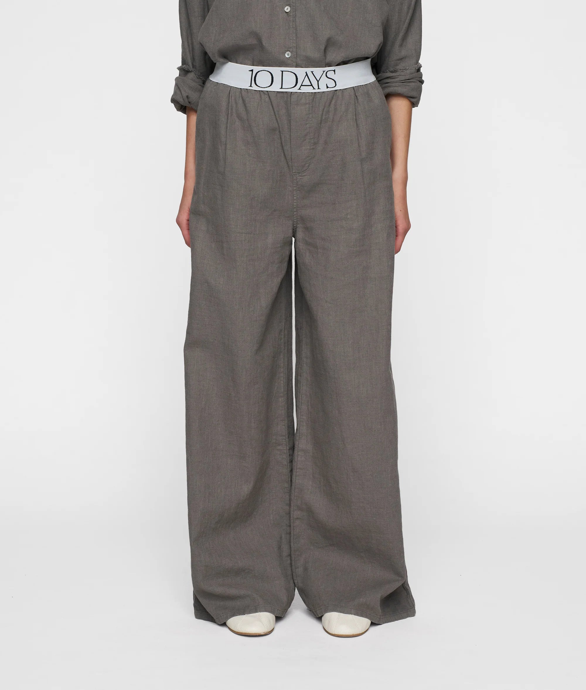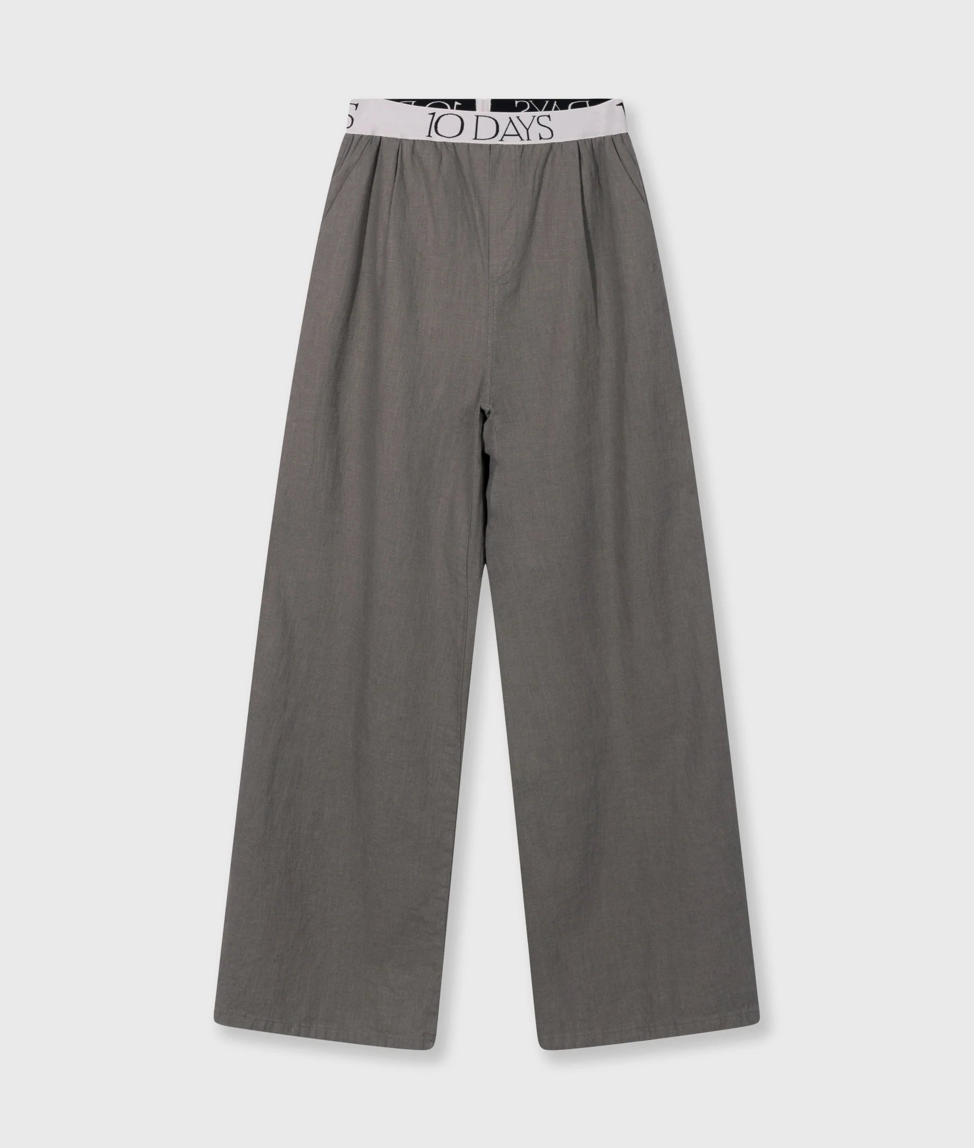 Relaxed fit broek met wijde pijpen, gemaakt van een katoen- en linnenblend. Voorzien van een elastieken 10DAYS tailleband, schuine steekzakken, een fake achterzak en een '10' monogram borduring onder de linker steekzak.
