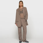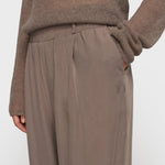 Relaxed fit flowy broek, gemaakt van zachte twill. Voorzien van een elastische tailleband met riemlussen, schuine steekzakken, fake achterzakken en een '10' monogram borduring onder de linker steekzak.