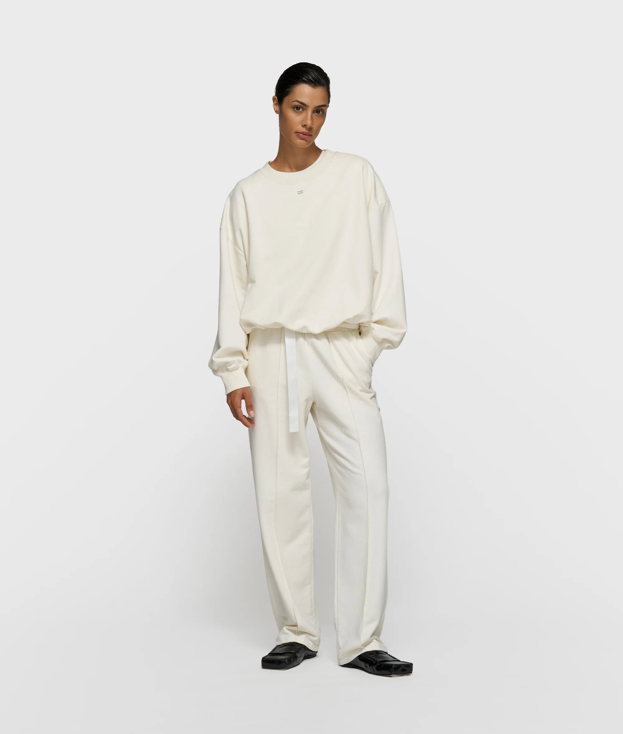 Oversized fit sweater met plooidetail, gemaakt van light old school fleece en gevoerd met katoenen jersey. Voorzien van ribgebreide boorden, een ‘curly 10’-artwork op het achterpand en een mini-stripes borduring onder de hals.