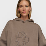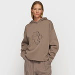 Oversized fit statement hoodie, gemaakt van dik geborsteld fleece. De sweater is voorzien van een 'curly 10' borduring op de borst, een capuchon, raw edge zoom en ribgebreide manchetten.