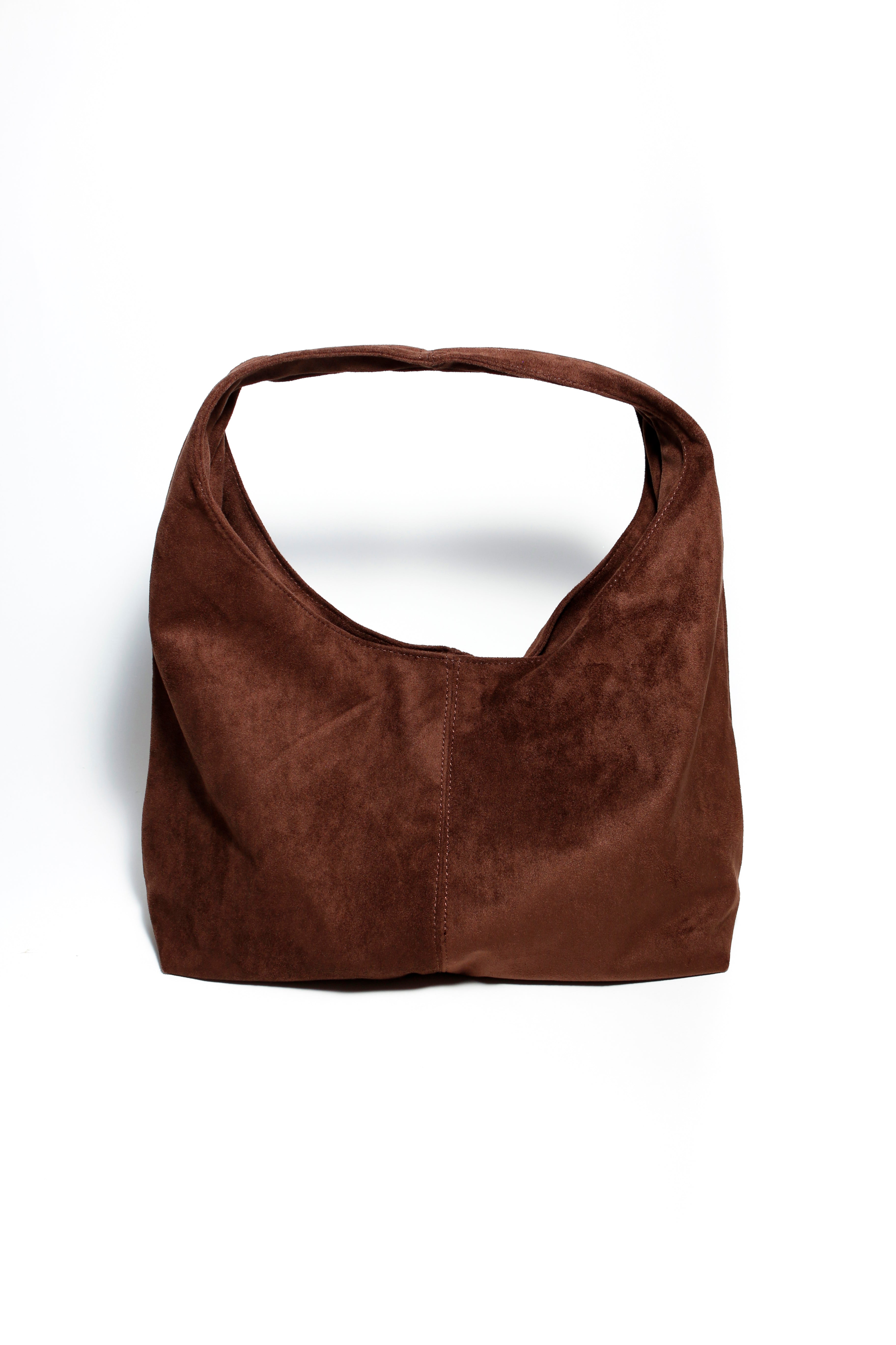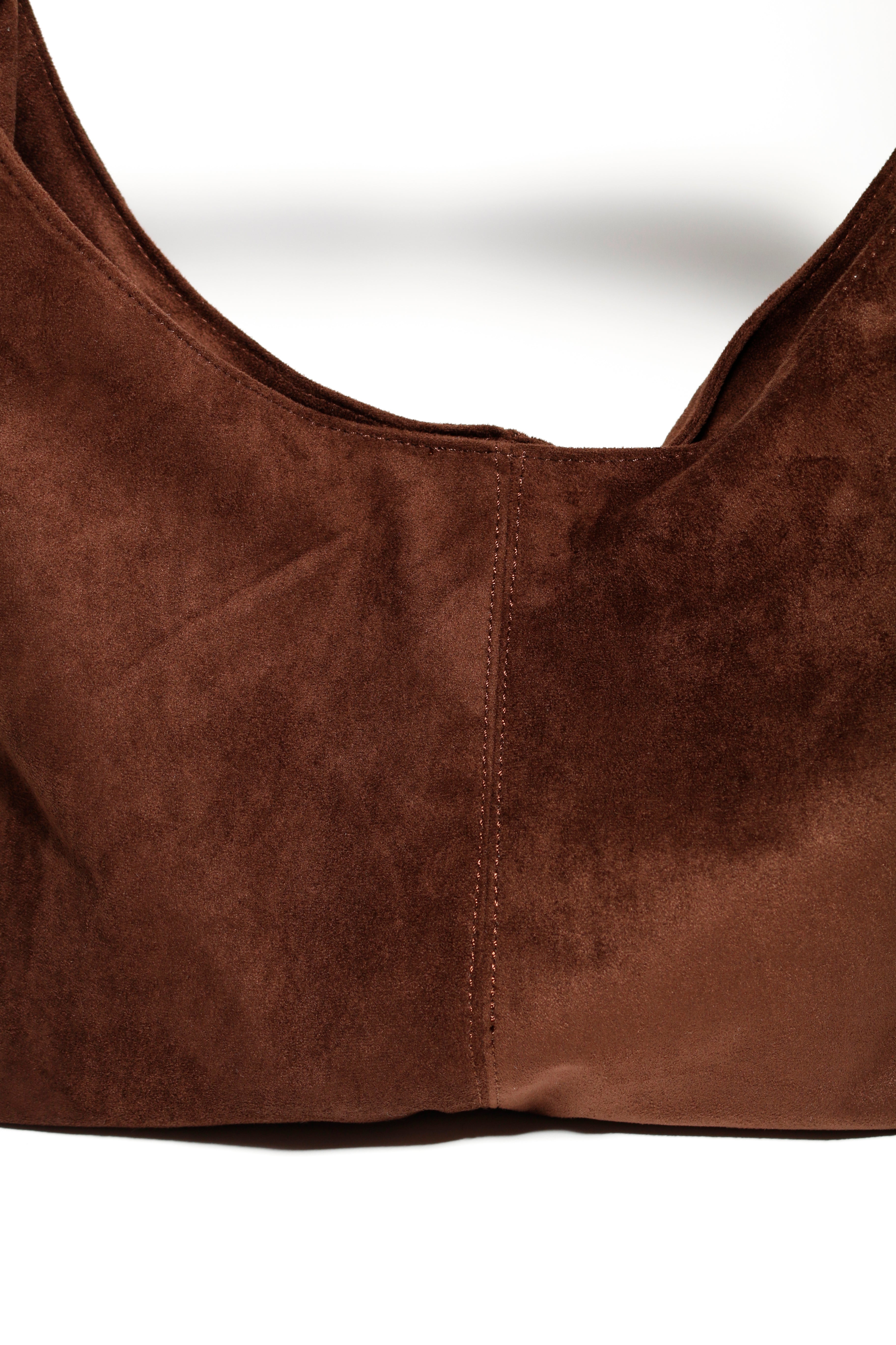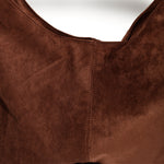 Deze stijlvolle shopper in een bruin suède look, heeft een nonchalant, ruim model dat moeiteloos met elke outfit matcht. De tas wordt geleverd met een handige binnenzak met rits en een stevige, harde bodem zodat al je essentials veilig én geordend blijven. Draag de tas casual over je schouder tijdens een drukke dag, of elegant onder je arm als clutch voor een avondje uit.