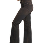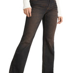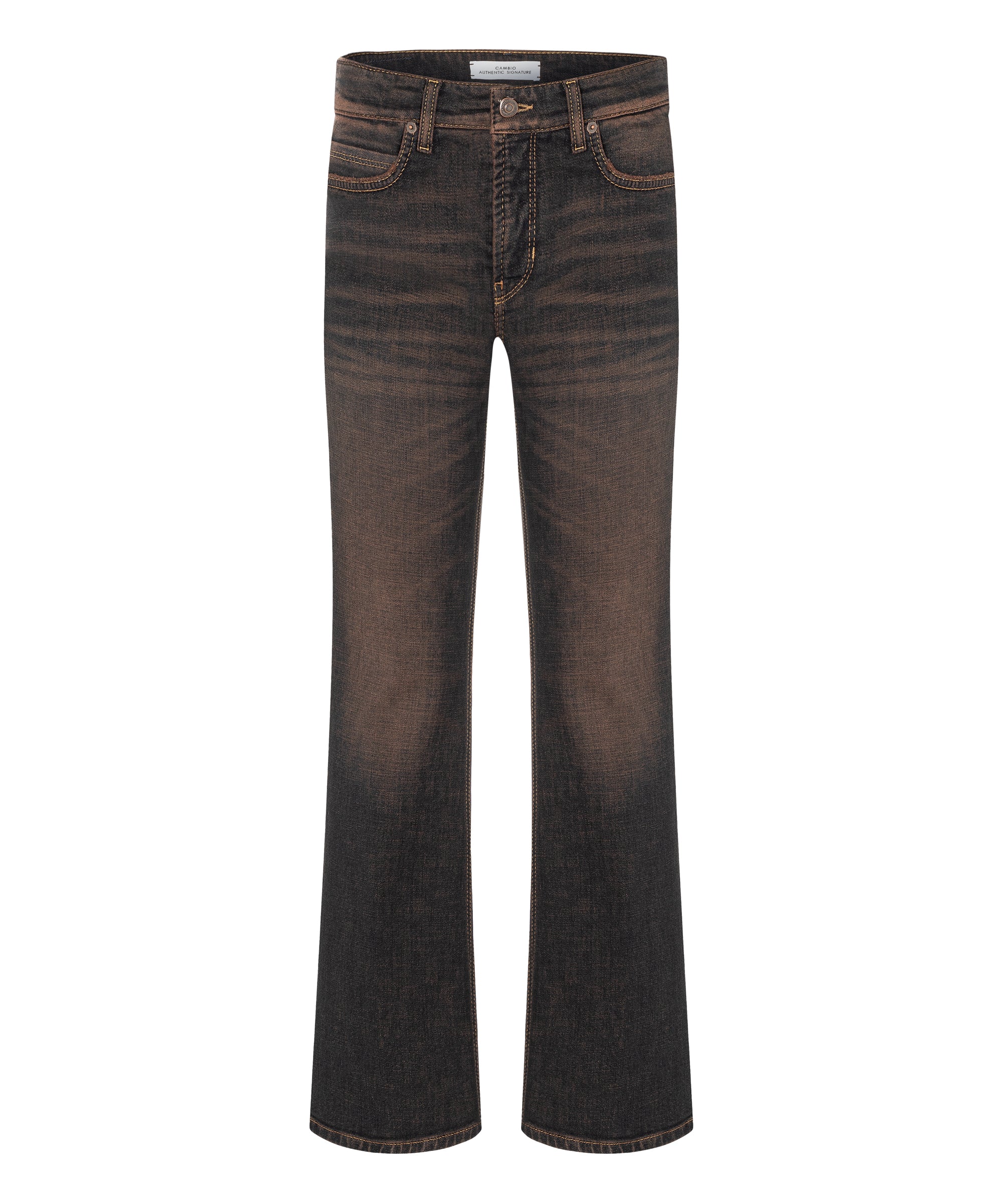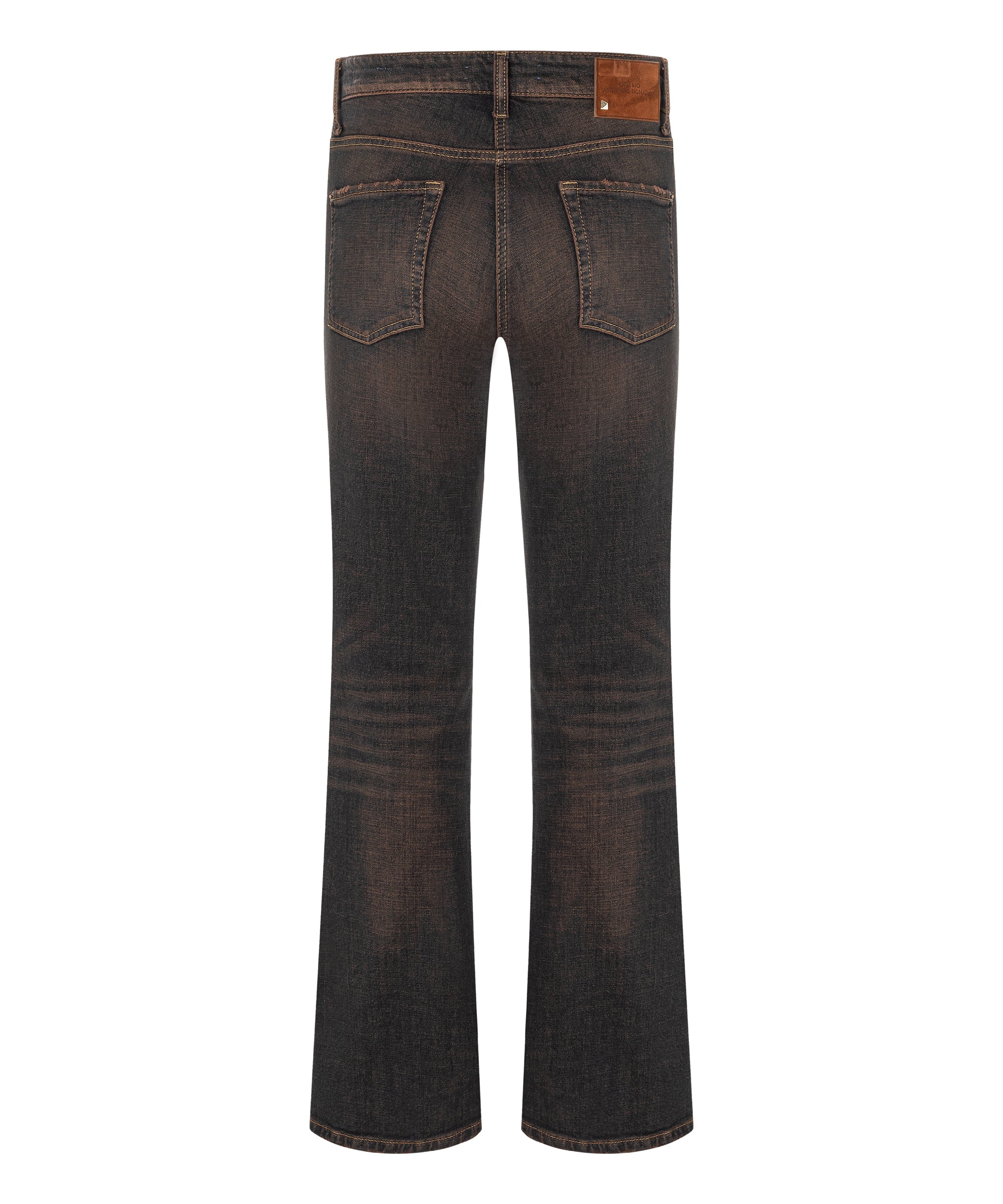 Een mooie jeans in een overdyed cross brown kleur. De jeans heeft een licht uitlopende flared pijp. Goed te combineren met mooie laarzen of sneakers.