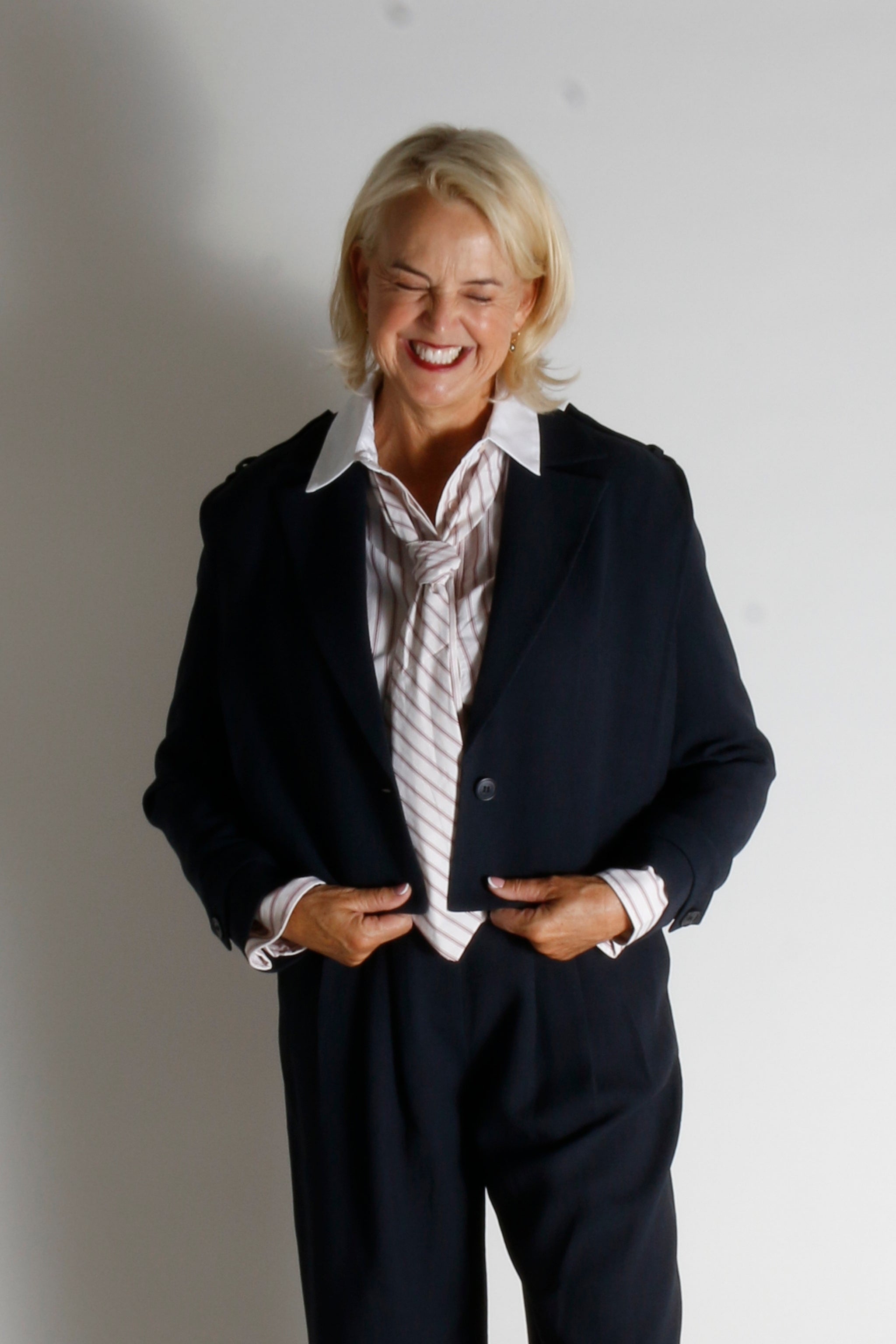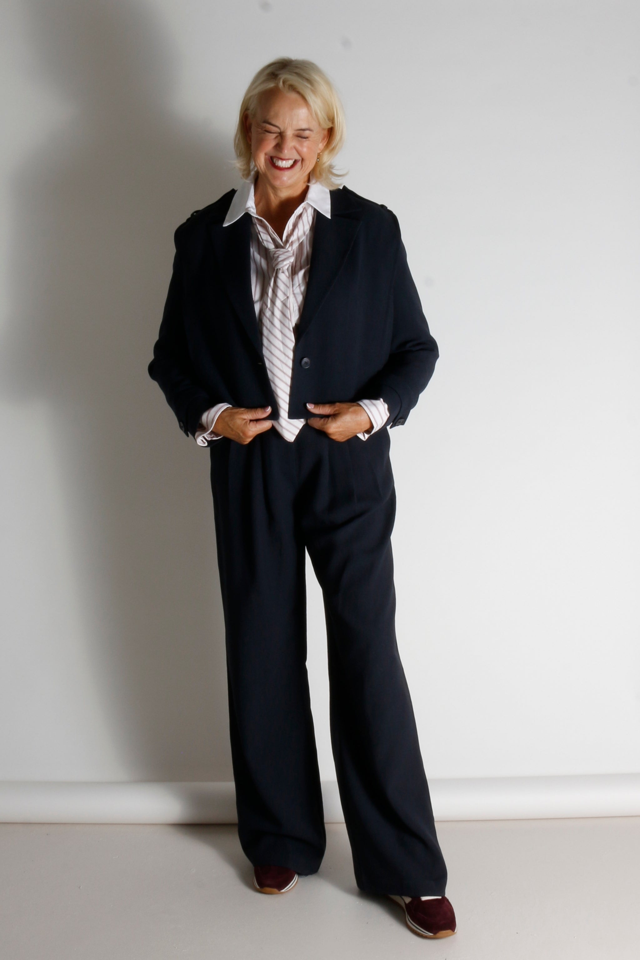 Deze korte cropped blazer heeft brede schouders die zorgen voor een gaaf silhouet. De knoopdetails geven een stijlvolle toevoeging. Draag dit jasje zowel casual als naar je werk.