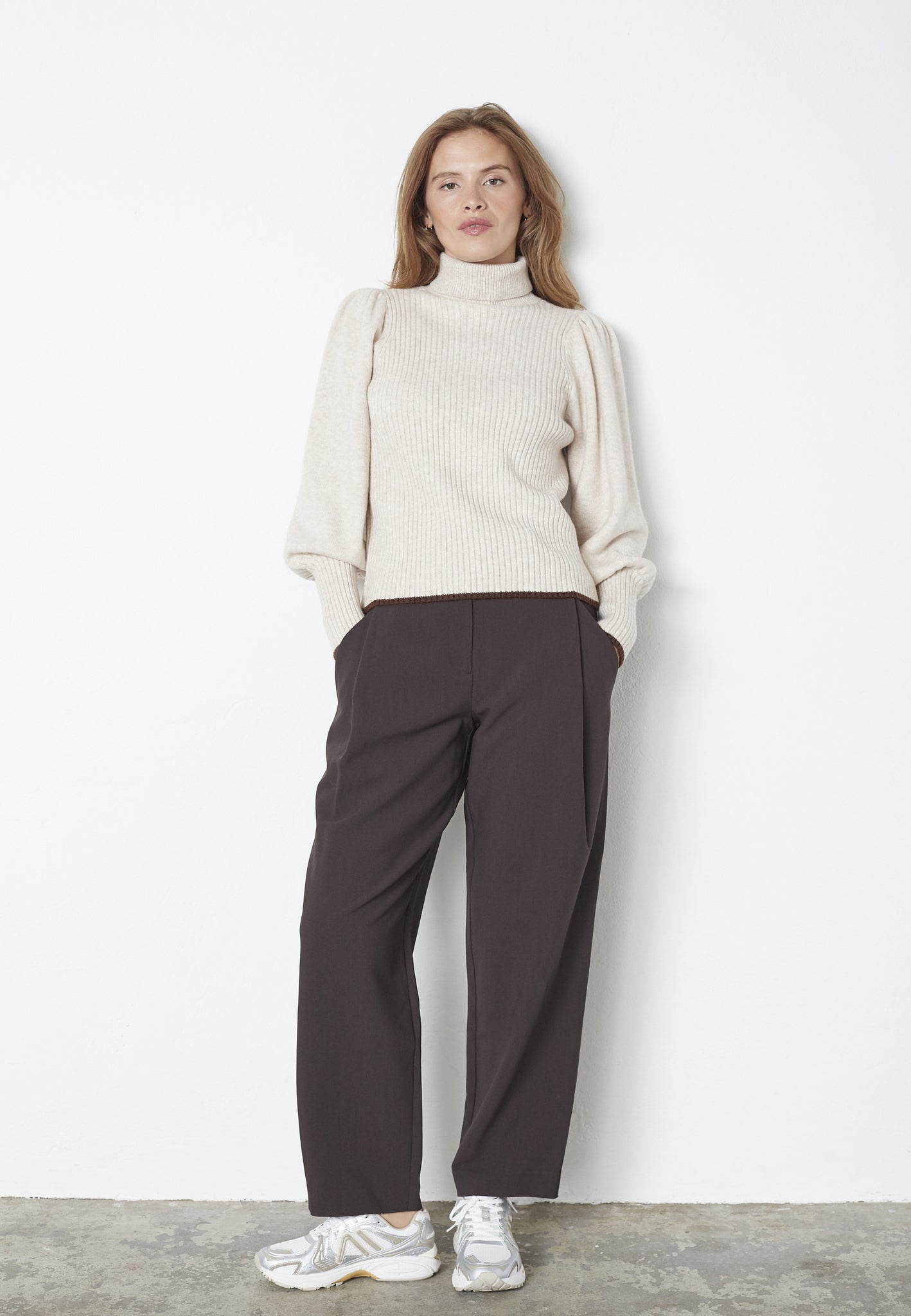 Deze rechtvallende trui is een musthave voor de koudere dagen. De col maakt hem heerlijk warm en ook de lange mouwen zorgen voor een comfortabele fit. Bij de boorden en onderaan de trui is hij afgewerkt met een bruin randje,