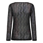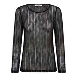 Barb is een zwarte Mesh top met een voelbaar patroon erin. De top heeft lange mouwen, een hoge ronde hals en een aangesloten pasvorm. Geweldig te gebruiken om mee te layeren, of vrouwelijk met een bralette te dragen.