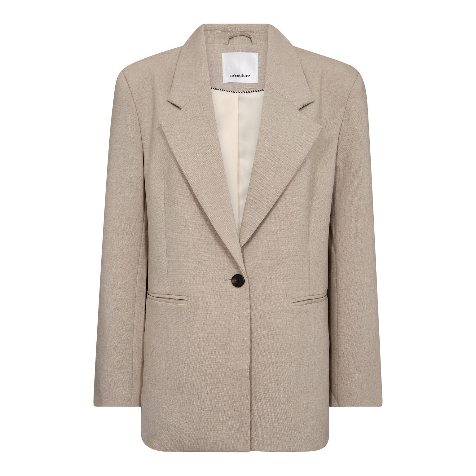 Deze stijlvolle blazer in een natuurlijke zandtint is een tijdloze toevoeging aan je garderobe. Het licht getailleerde, iets langere model is ideaal voor het voorjaar en de zomer.