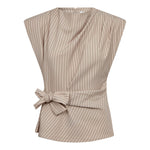 Deze beige pinstripe top van Co’Couture heeft een elegante overslag en een strikceintuur in de taille voor een vrouwelijk silhouet. De licht gestructureerde stof met polyester, viscose en elastane zorgt voor een comfortabele fit en een mooie valling. Perfect te combineren met de bijpassende broek voor een stijlvolle co-ord set of los op een jeans.