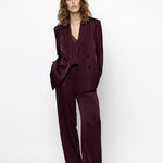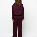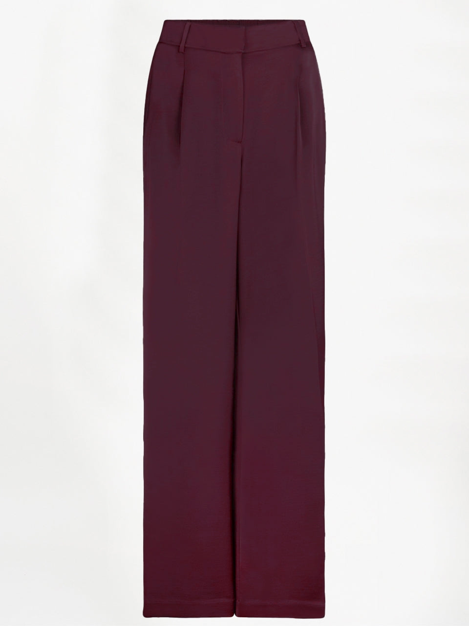 DeJules broek in Mulberry Red is een tijdloze essential. Deze flatterende stijl is gemaakt van 100% gerecycled polyestersatijn met mechanische stretch. De subtiele kreukeffecten in de stof geven diepte en karakter aan je look. De broek heeft een hoge taille met plooien aan de voorkant en een elastische tailleband achter voor extra draagcomfort.• Wide leg broek met lange pijpen.