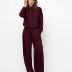 Maak een statement met de Sally top in Mulberry Red. Deze satijnen top heeft lange vleermuismouwen en een opstaande kraag voor een chique touch. Draag het met de bijpassende Jules broek voor de ultieme DANTE6 look.