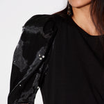 De zwarte jersey Mignon top van Dante heeft een prachtige pofmouw met schitterende details. Het embelishment op de mauw geeft de top een feestelijke touch. Maar is zeker ook mooi casual te dragen.