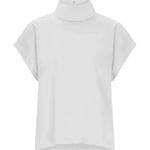 ALARIA_1 is een shirtblouse met een relaxte pasvorm en een H-lijn silhouet. De blouse heeft korte, overgesneden mouwen, een opstaande kraag en een knoopsluiting. Gemaakt van hoogwaardig, soepelvallend satijn.