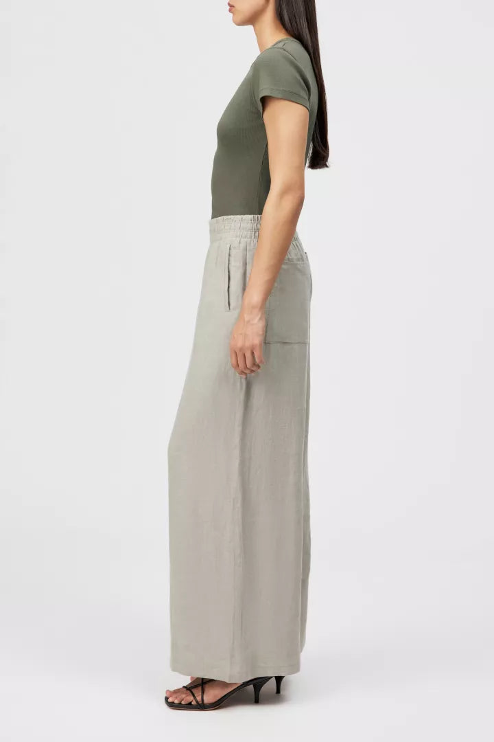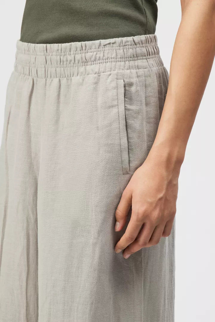 CEILING is een broek met wijde pijpen en een elastische tailleband. De casual pasvorm wordt laag op de heupen gedragen. De zomerse linnen stof voelt licht en comfortabel aan dankzij de natuurlijke eigenschappen. Gemaakt van duurzaam linnen