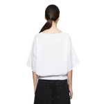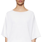 DILARY is een casual gebreid T-shirt met een korte, oversized pasvorm. Het heeft korte mouwen en een ronde halslijn. De eigenschappen van crêpe katoen maken het zacht en comfortabel om te dragen.