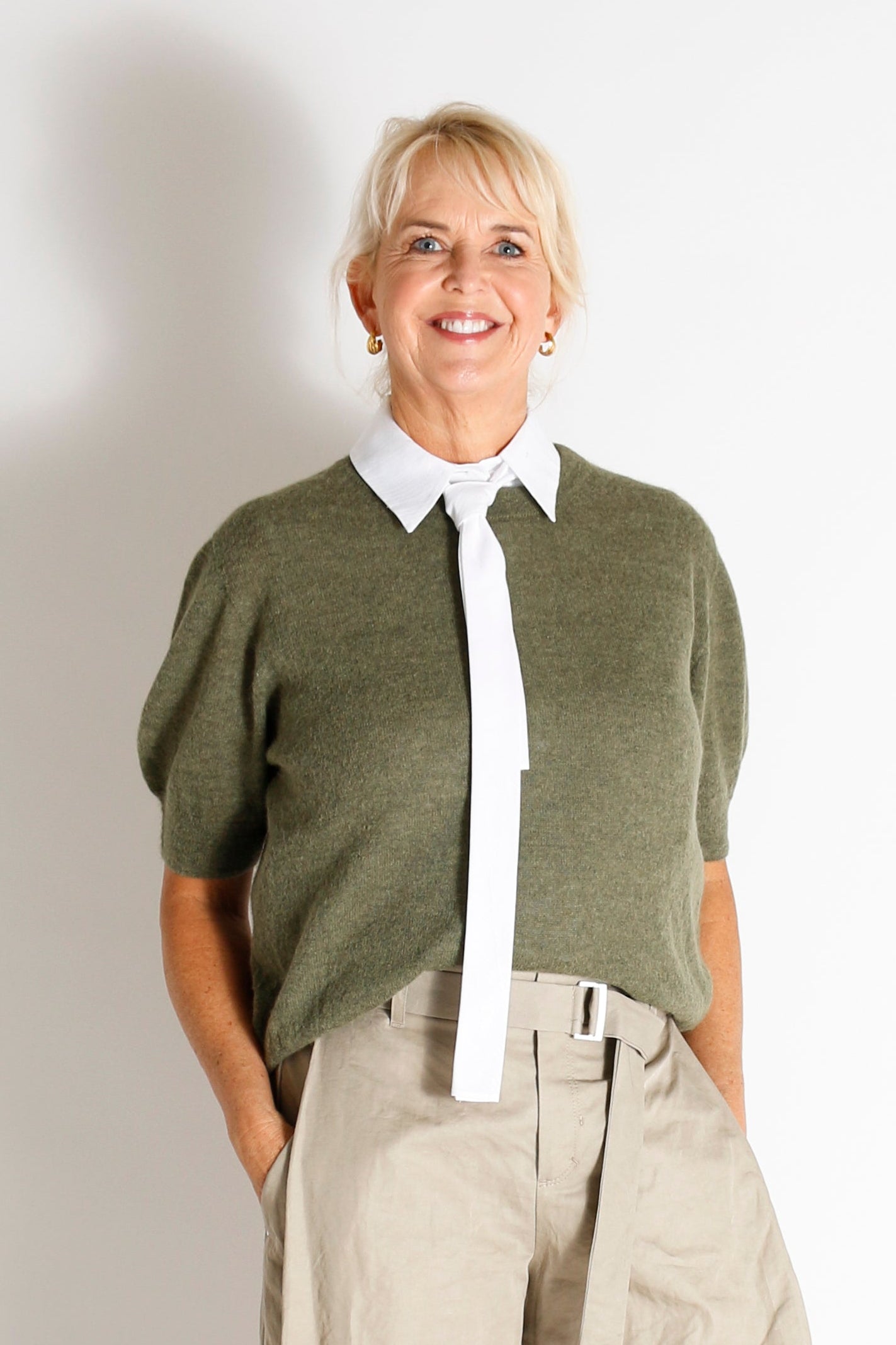 De Drykorn Sanidy top is een stijlvolle knit met een minimalistische uitstraling. Het model heeft een comfortabele, licht boxy fit met korte mouwen en een ronde hals. Dankzij de zachte brei en tijdloze kleur is deze top perfect te combineren met zowel een jeans als een pantalon voor een moderne, clean look. Draag hem over een blouse of met een stropdas om je outfit een extra touch te geven.