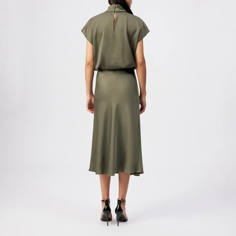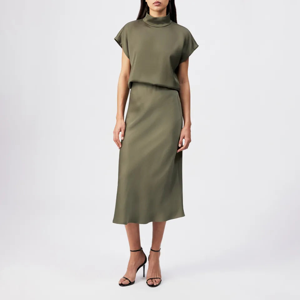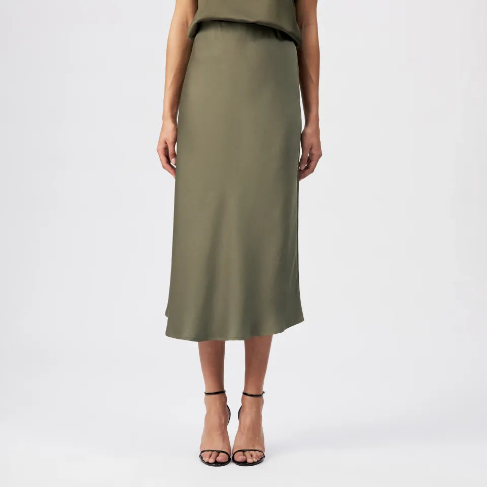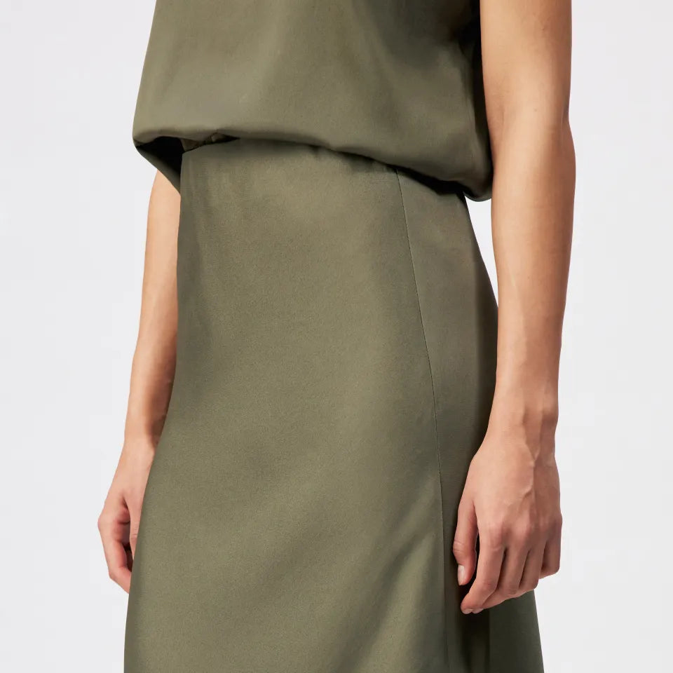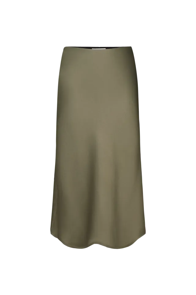URA is een elegante slip-rok in midilengte. De vrouwelijke A-lijn rok wordt mid-waist gedragen. De tijdloze stijl biedt een verscheidenheid aan combinatiemogelijkheden. Gemaakt van een hoogwaardige en vloeiende satijn. Het model is 178cm lang en draagt maat 27.