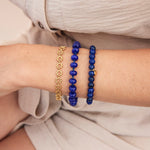 Mooie gemstone armband met een diepblauwe kleur. De gemstones hebben een afmeting van 8 x 5 mm. Doorde verlengketting kun je de lengte van de armband gemakkelijk aanpassen. De gouden accenten zijn verguld op longlasting stainless steel.