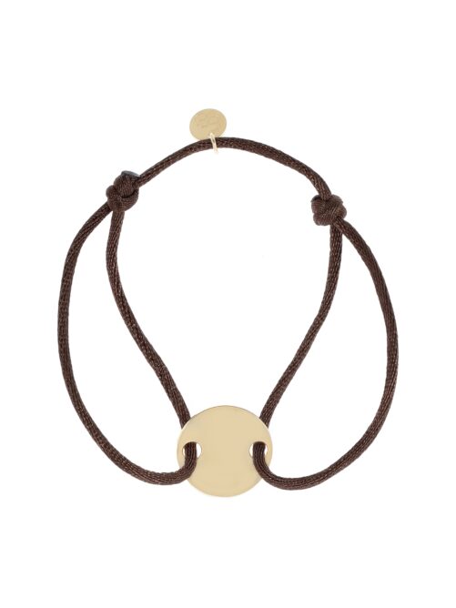 Armband met een verstelbaar koord en een ronde bedel. De diameter van de bedel is 1.5cm. De bedel is verguld op longlasting stainless steel en het armbandje komt met EB logo tag.