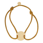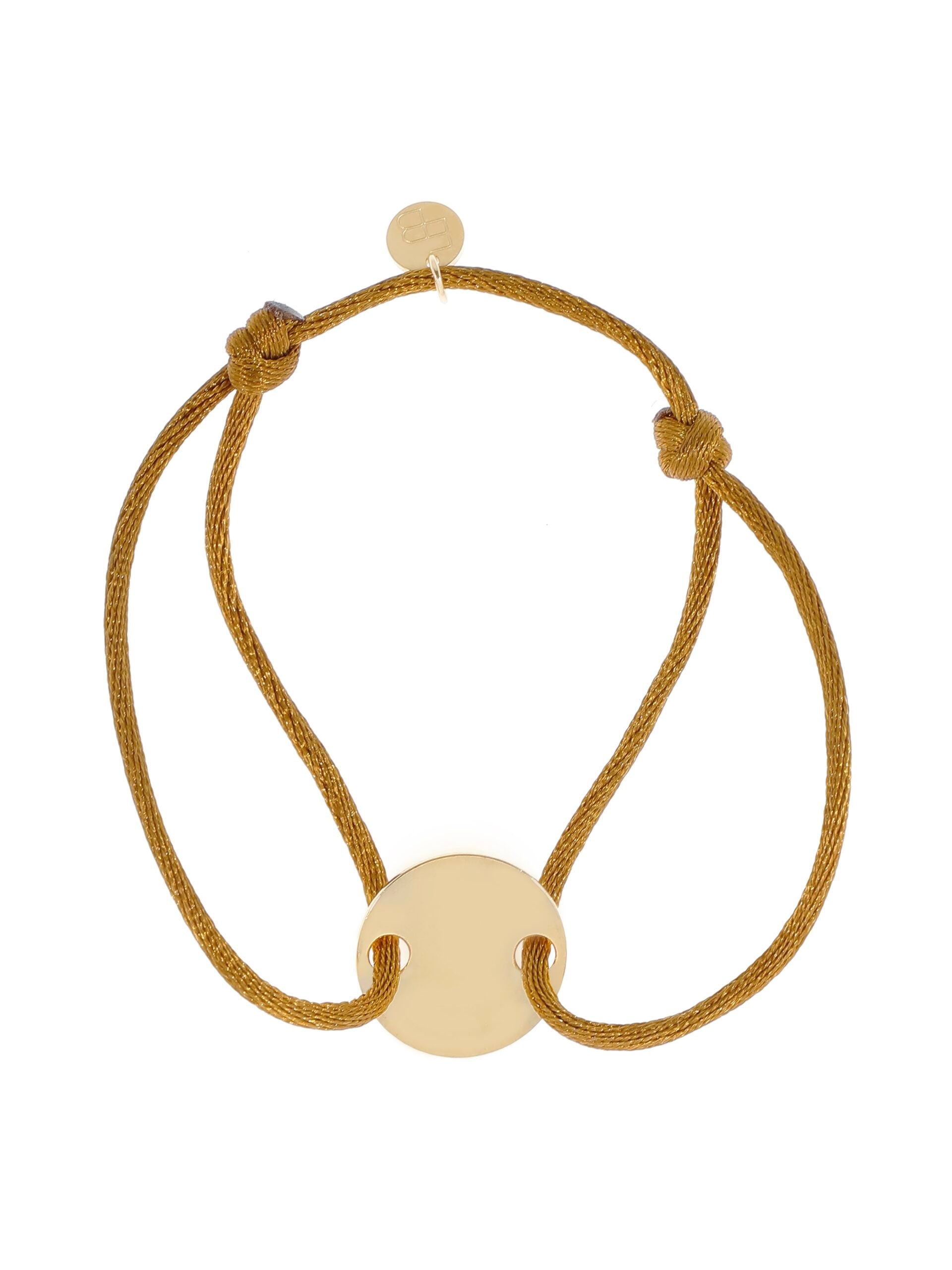 Armband met een verstelbaar koord en een ronde bedel. De diameter van de bedel is 1.5cm. De bedel is verguld op longlasting stainless steel en het armbandje komt met EB logo tag.