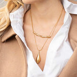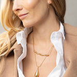 Vergulde ketting met een "organic drop" hanger. De lengte van deze ketting is 50cm met een verlengkettinkje van 10cm. Goldplated op longlasting stainless steel. Prachtig met bijvoorbeeld een diepe hals te dragen.