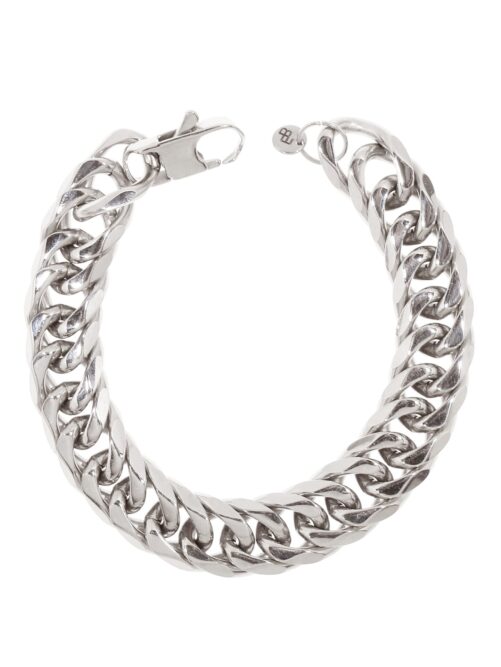 Stijlvolle armband met grove zilveren schakel. De breedte van de schakel is 1.3 cm en voegt een krachtige touch toe aan elke outfit. Verzilverd op long-lasting stainless steel.