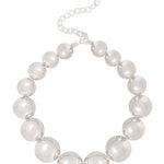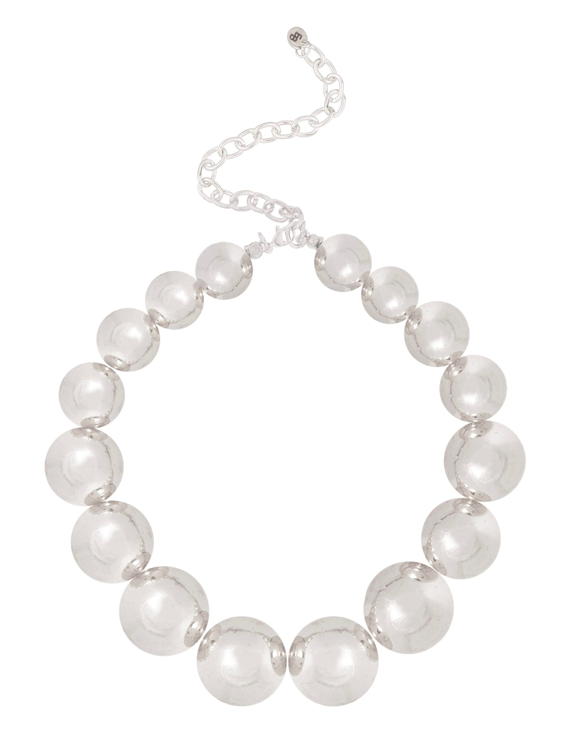 Een echte eyecatcher met zilverkleurige kralen in een prachtige vintage look. De kralen variëren in diameter van 1.5 tot 2.5 cm, wat de ketting een speels maar toch krachtige uitstraling geeft. De lengte van de ketting is 40 cm en hij is voorzien van een verlengkettinkje van 10 cm voor de perfecte pasvorm. Verzilverd op messing, stijlvol, karaktervol en ideaal als statement piece bij elke outfit.