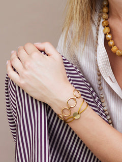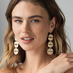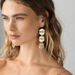Opvallende, elegante oorbellen met drie goudkleurige, organisch gevormde schijven die subtiel bewegen bij elke stap. De oppervlaktestructuur geeft een luxe uitstraling en maakt deze oorbellen tot een echte statement piece. Perfect voor feestelijke gelegenheden, avondlooks of als chique eyecatcher bij een minimalistische outfit.