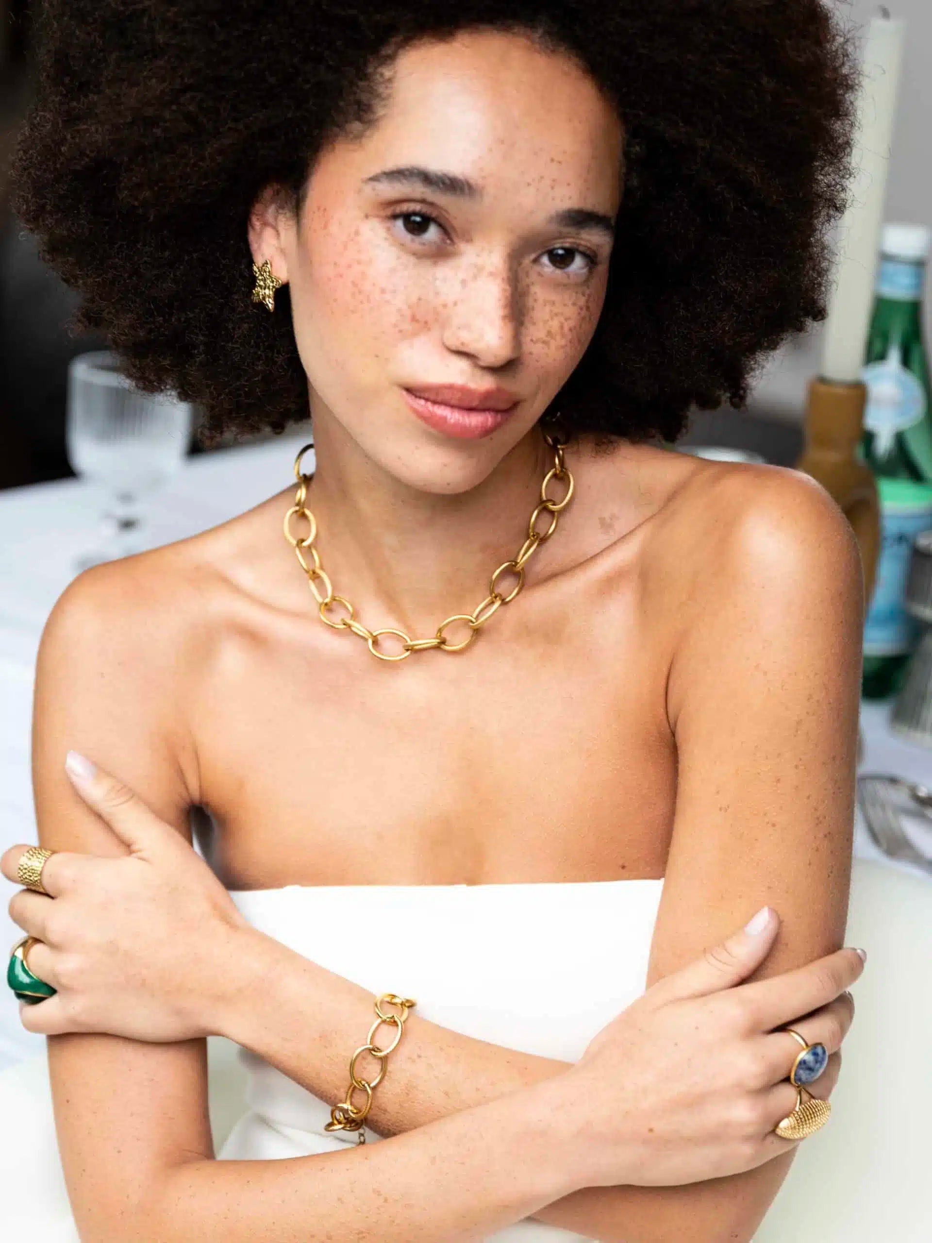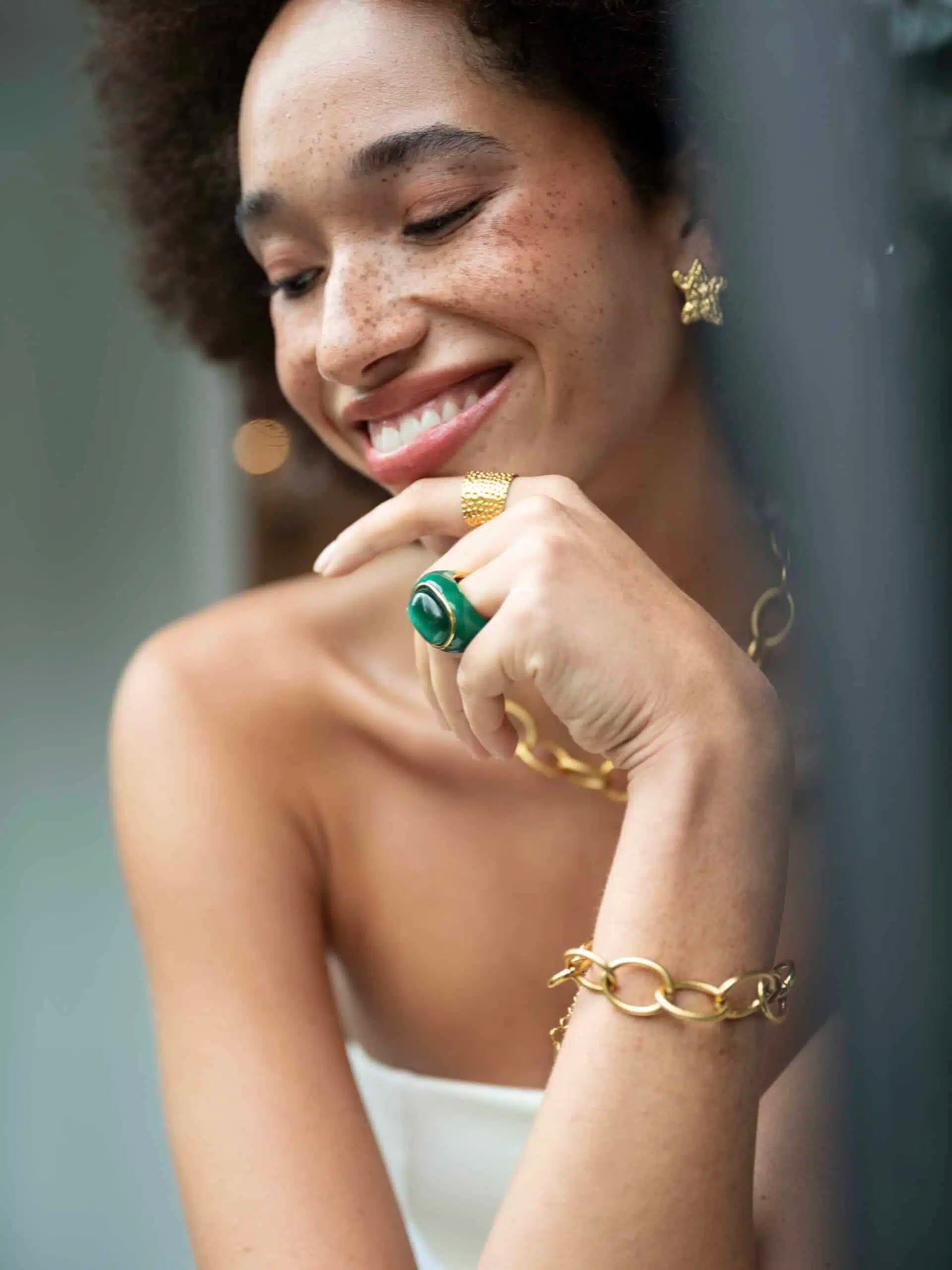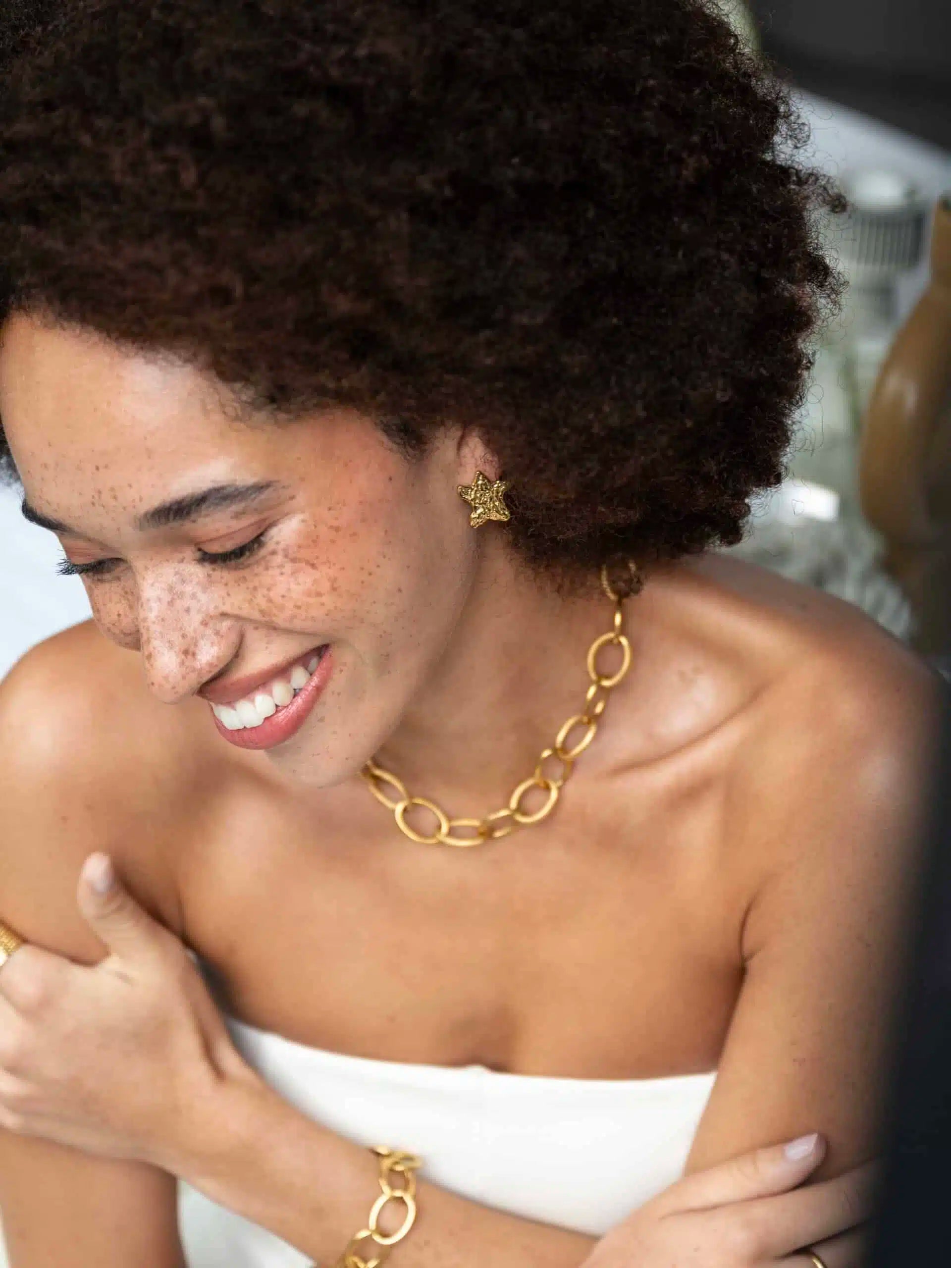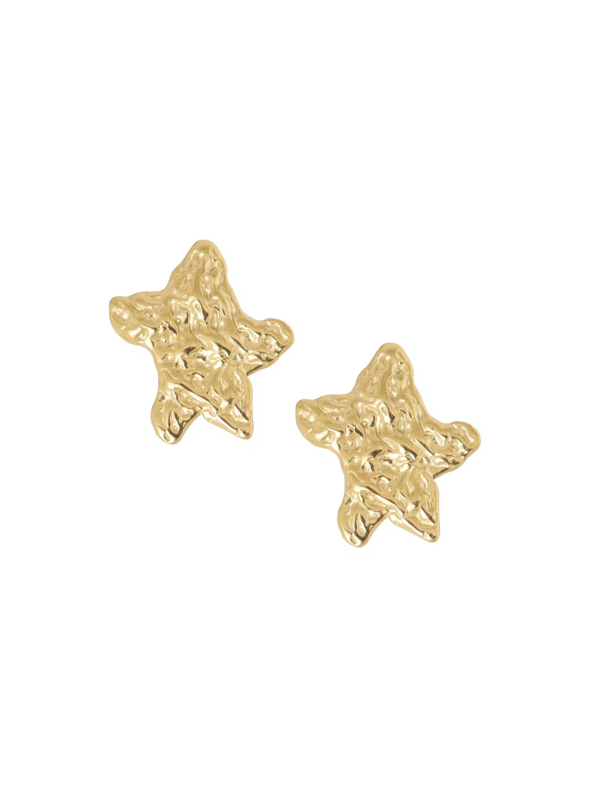 Stralende stervormige oorstekers met een organisch, gehamerd design. De oorbellen zijn 2,2 cm lang en 1,8 cm breed en gemaakt van longlasting stainless steel met een prachtige vergulde afwerking. Perfect om elke outfit net dat beetje extra te geven!
