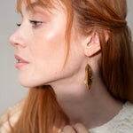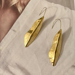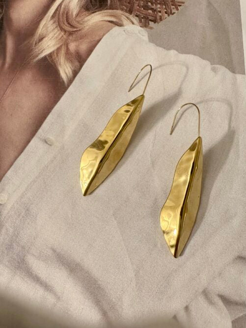 Elegante vergulde oorbellen met sierlijk langwerpig blad. De lengte is 6.5 cm. De oorbellen zijn licht van gewicht en verguld op long-lasting stainless steel.