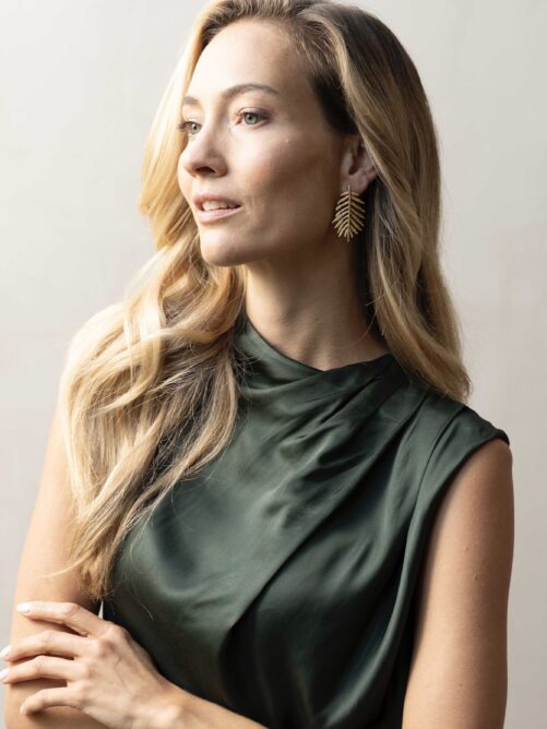 Elegante oorstekers in de vorm van een palmblad/gouden takje. De lengte is 4.5 cm en de breedte 2.5 cm. Gemaakt van longlasting stainless steel en prachtig verguld voor een luxe uitstraling. Licht, stijlvol en een subtiele statement-maker bij elke look.