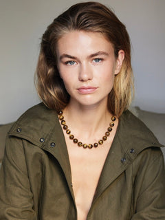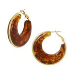 Stijlvolle ronde oorstekers verguld met gelakte hars in cognac melee en goud. De oorstekers hebben een lengte van 3.5 cm en breedte van 0.8 cm. Verguld op long-lasting stainless steel.