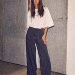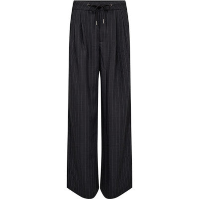 Deze relaxed fit broek van Haute l'Amitié heeft bandplooien die zorgen voor een casual chique look. De pinstripe maakt hem goed geschikt voor alledaags gebruik. Hij is in de taille verstelbaar middels touwtjes.