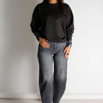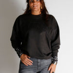 Comfy sweater van Haute l'Amitié. De trui is losvallend en valt normaal op maat. De applicaties op de trui geven een stoere uitstraling.