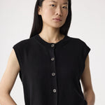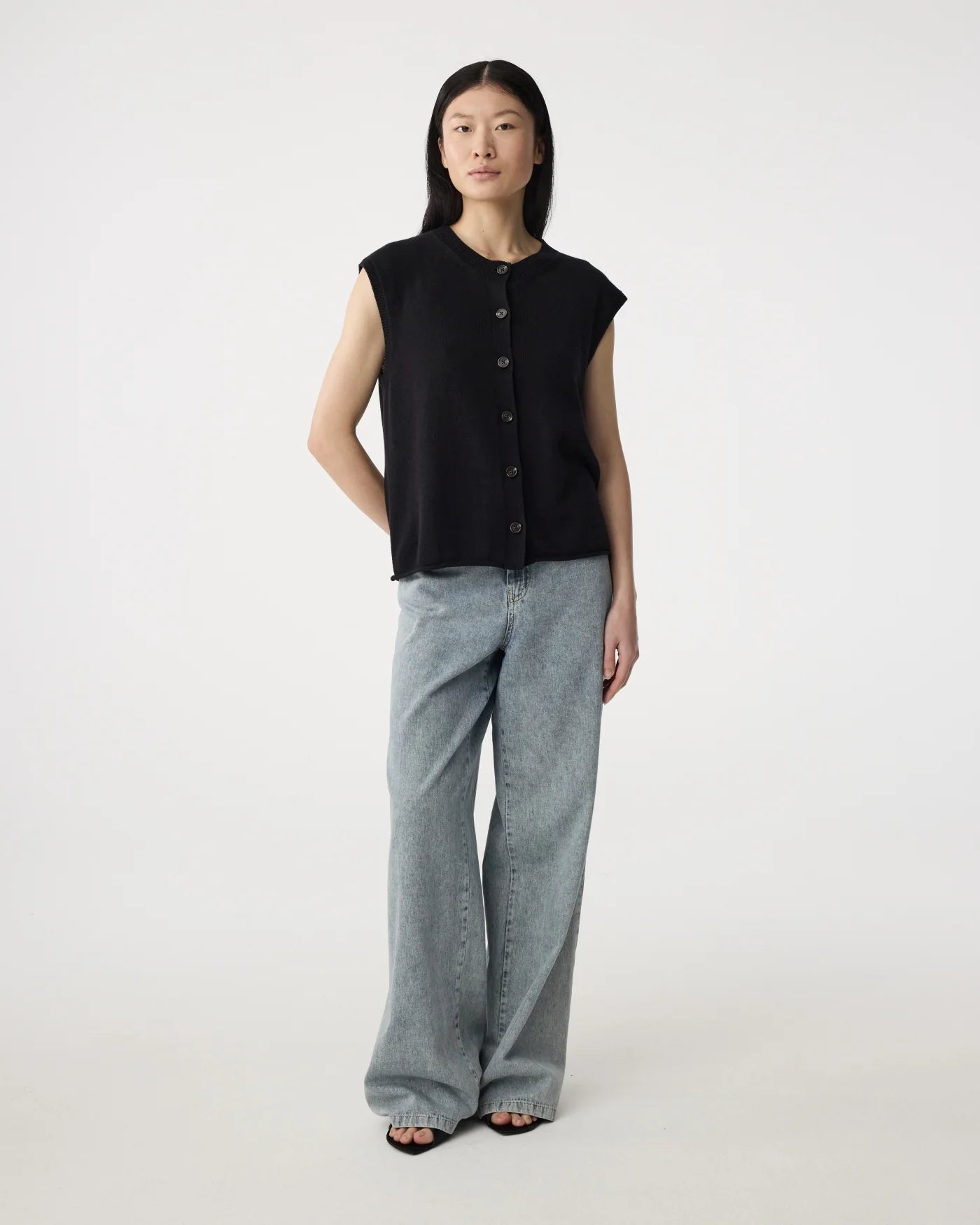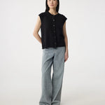 Het Lotte vest is een luchtige layering piece met een klassieke twist. Mouwloos, met een ronde halslijn en turtoise-look knopen. De ribgebreide randen zorgen voor een verzorgde afwerking. Er is bewust gekozen voor een hoogwaardige mix van katoen en linnen. Daardoor voelt de stof natuurlijk aan, valt het soepel en blijft het ontwerp goed in vorm. Mooi met blote armen of als extra laag over een blouse of top.