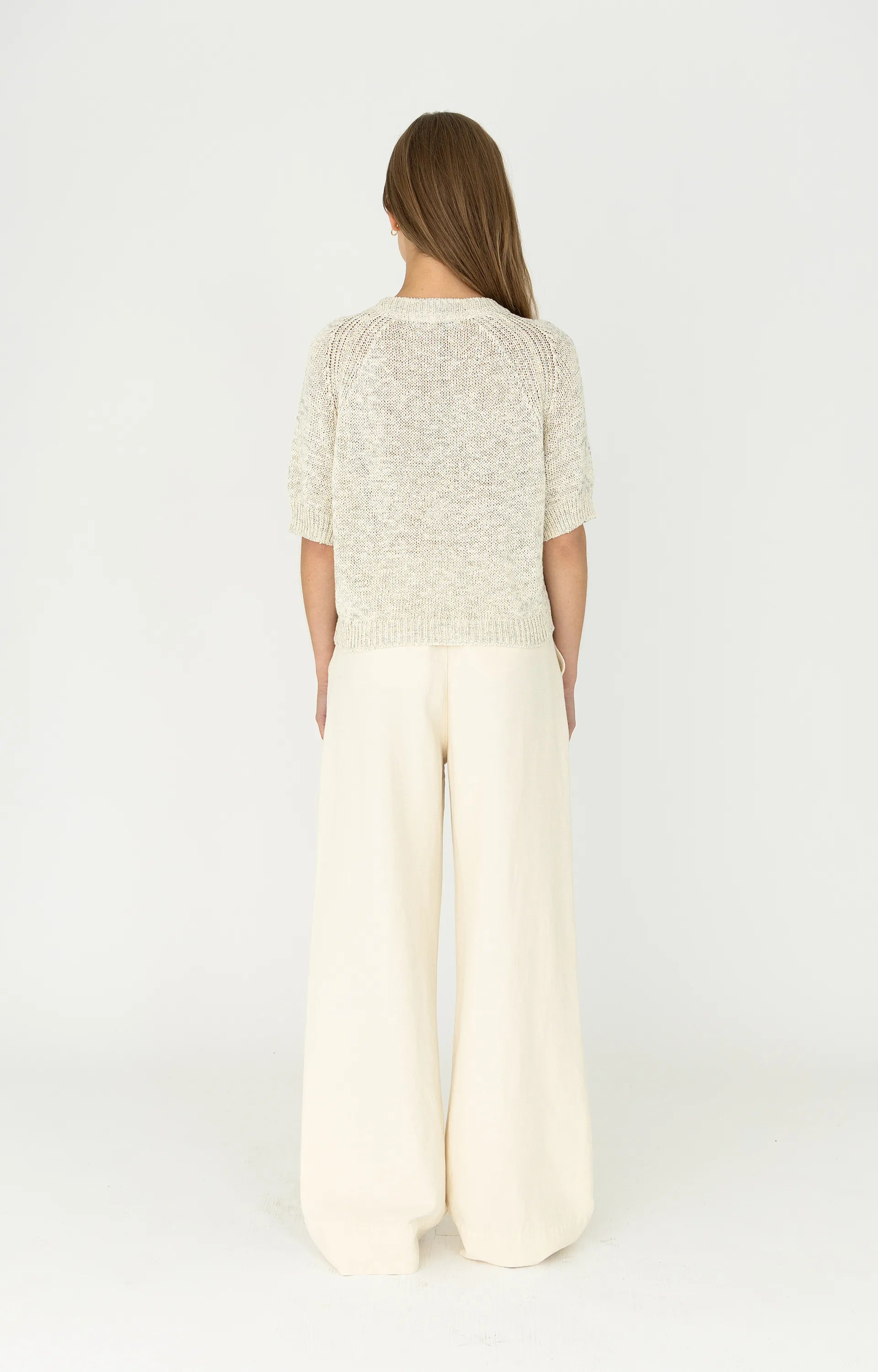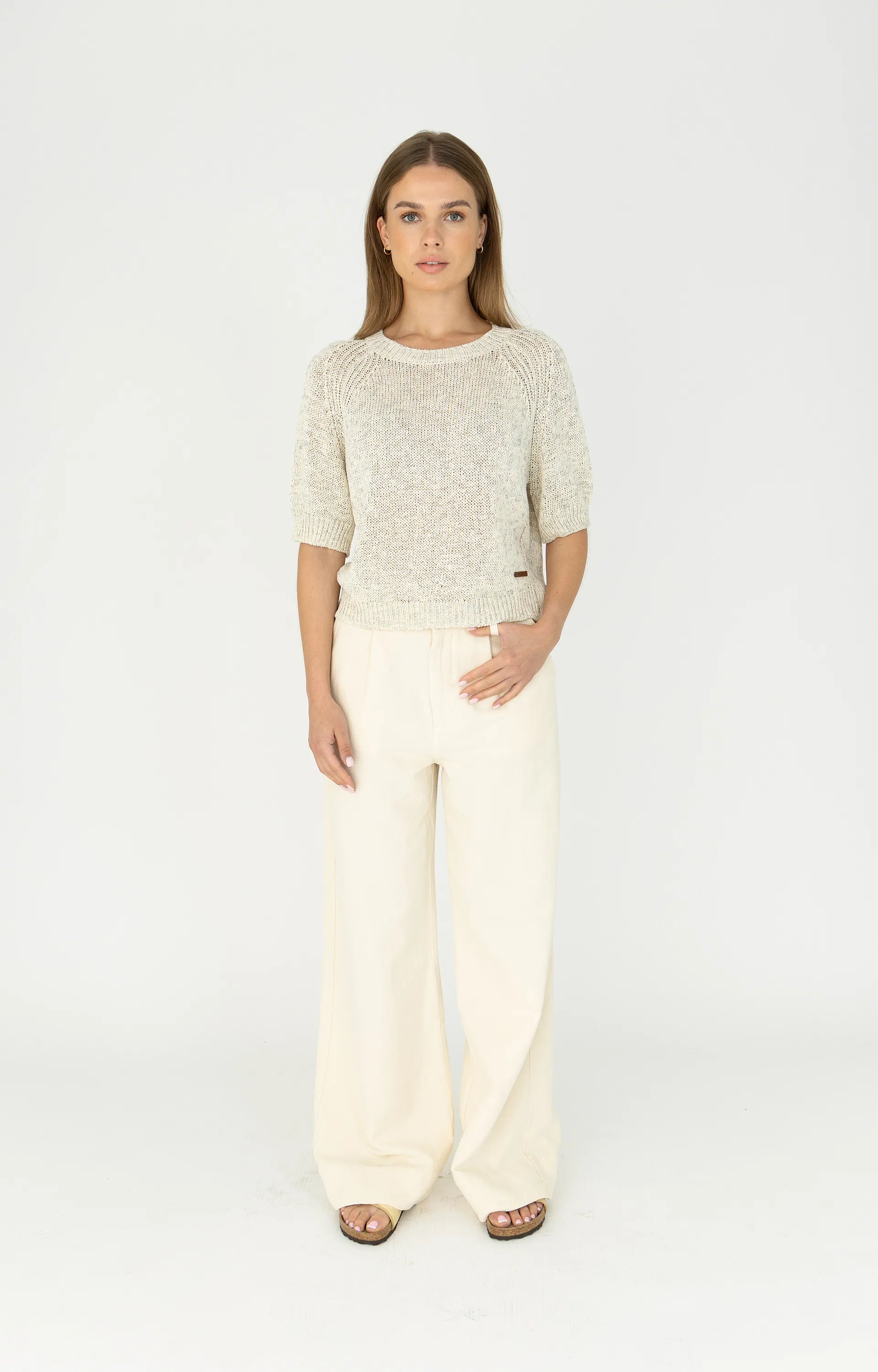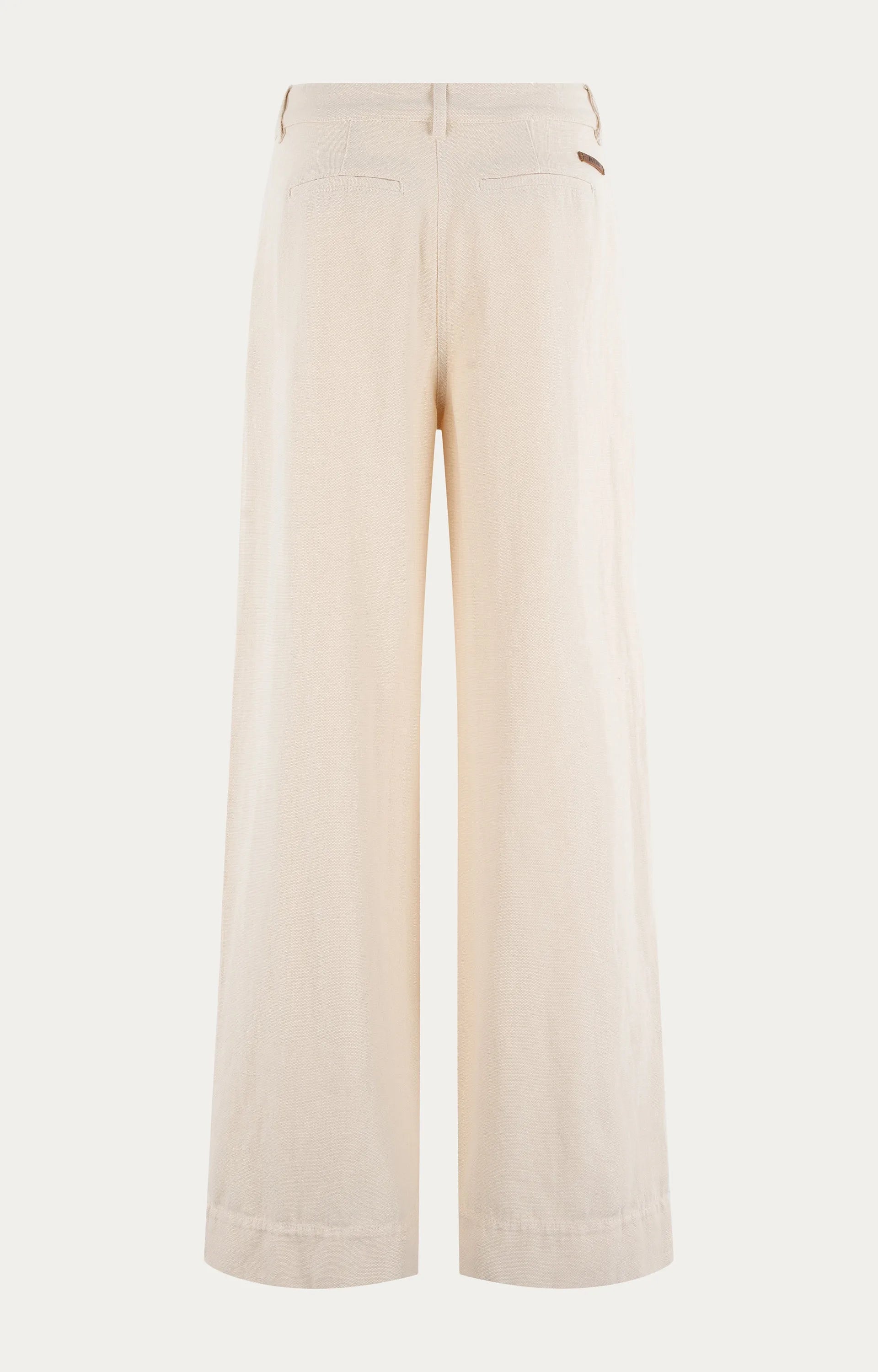 Deze elegante wijde pantalon combineert comfort met een verfijnde uitstraling. De soepelvallende stof en rechte, extra wijde pijpen zorgen voor een mooie, vloeiende pasvorm die het silhouet verlengt. De elastische tailleband met strikdetail biedt optimaal draagcomfort en een nonchalante touch.