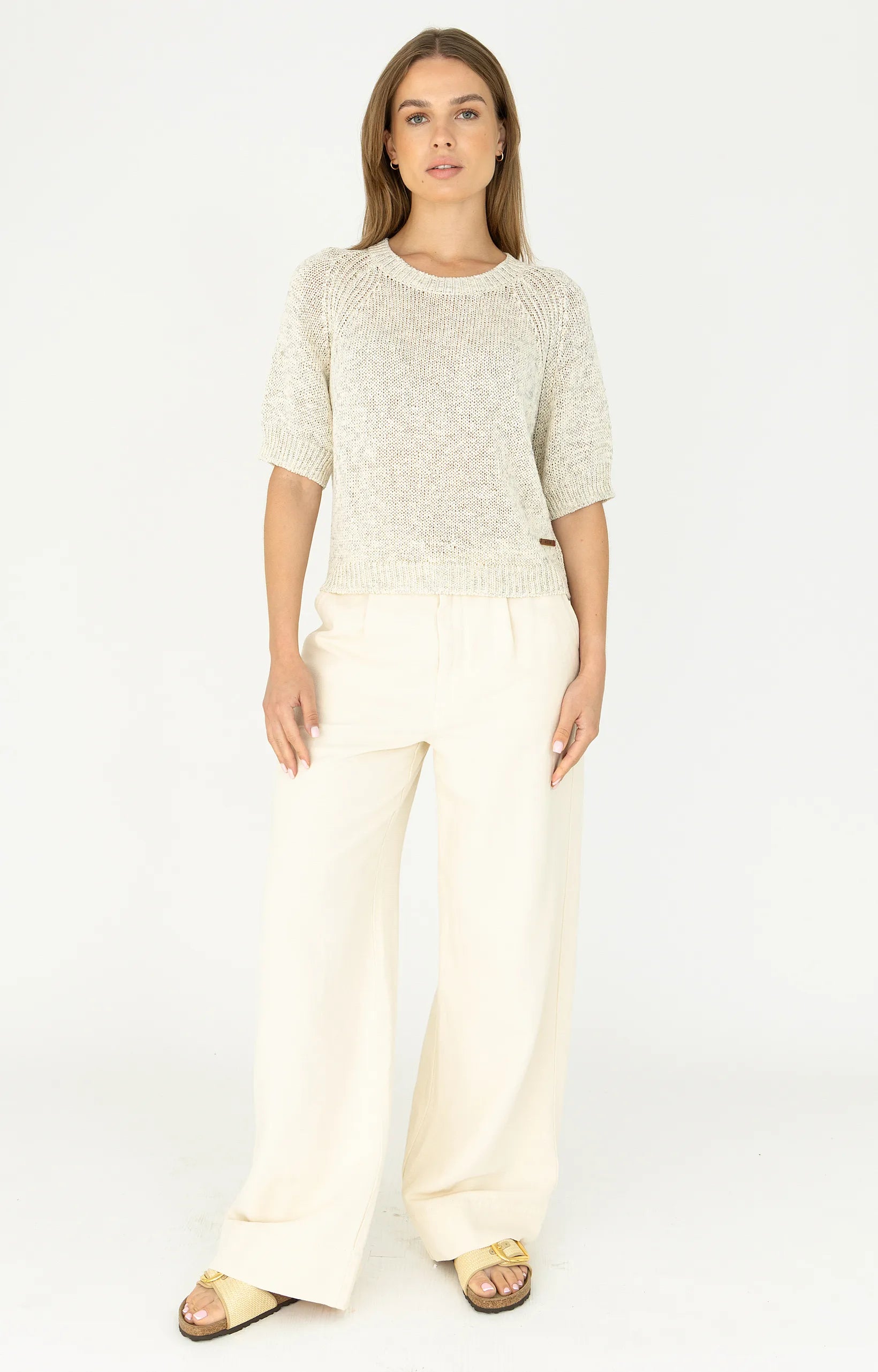 Deze Moscow pullover is perfect voor zomerse dagen dankzij de luchtige katoenmix. De normale pasvorm, korte mouwen en ronde hals zorgen voor een comfortabele en casual look. Uitgevoerd in de zachte tint ‘flax’ en afgewerkt met subtiele ribboorden – makkelijk te combineren en ideaal voor warm weer.