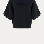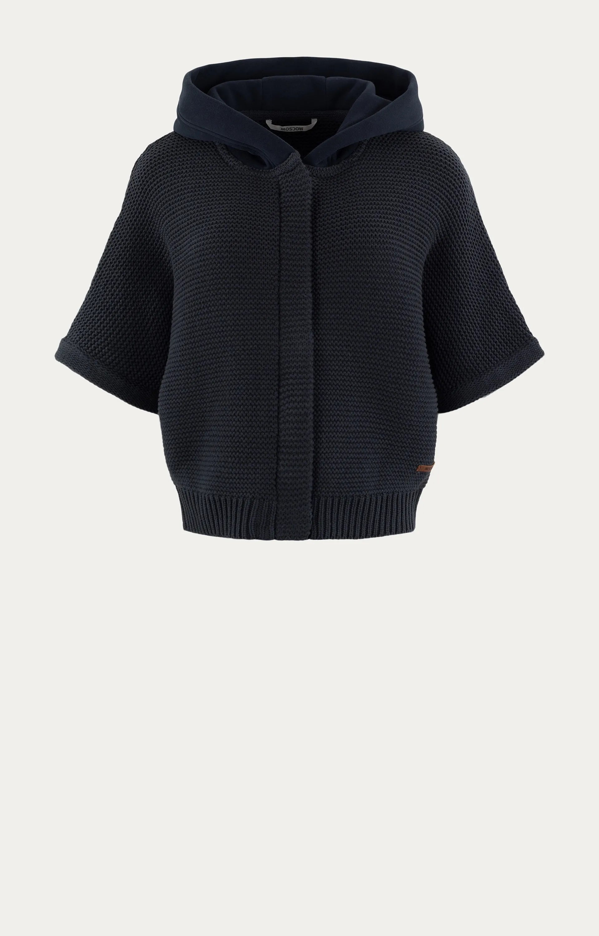 Dit donkerblauwe vest van Moscow is een comfortabele keuze voor zomerse dagen. Het vest is vervaardigd uit een gebreide mix van katoen en polyacryl en heeft korte mouwen. De capuchon is gemaakt van zachte sweatstof, wat zorgt voor extra draagcomfort. De combinatie van een ritssluiting en blinde drukknoopsluiting aan de voorzijde zorgt voor een nette afwerking. Dankzij de losse pasvorm is dit vest ideaal om casual te dragen.