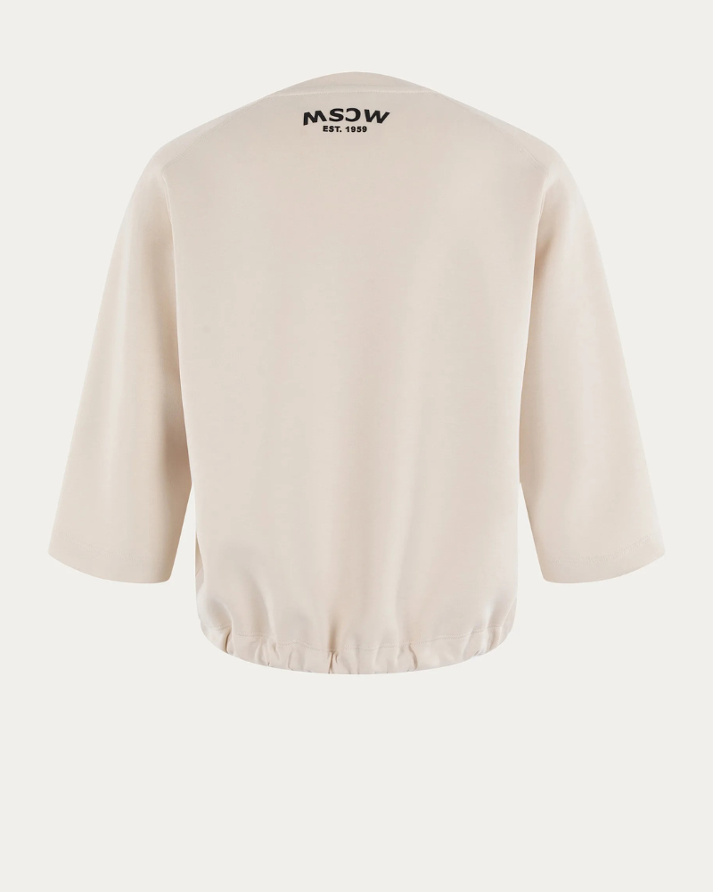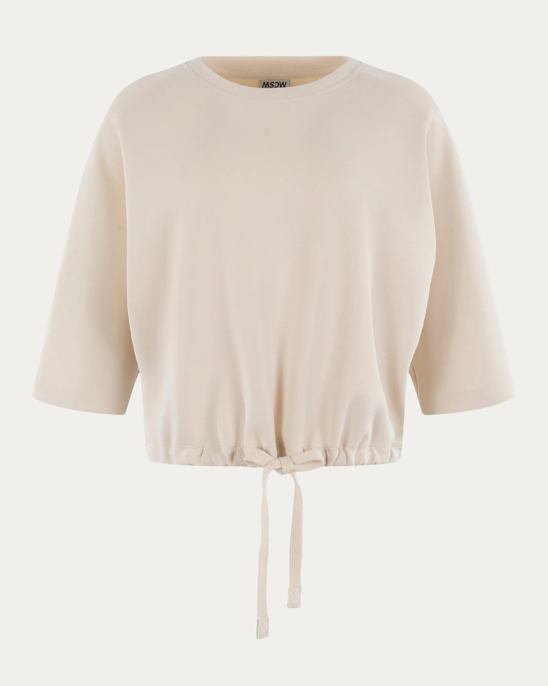Deze Moscow flax solid sweater is gemaakt van een zachte modalmix en heeft een comfortabele boxy fit. De ronde hals, raglanmouwen en het trekkoord aan de onderzijde zorgen voor een relaxte, zomerse look. Het subtiele MSW-logo op de rug maakt het ontwerp compleet.