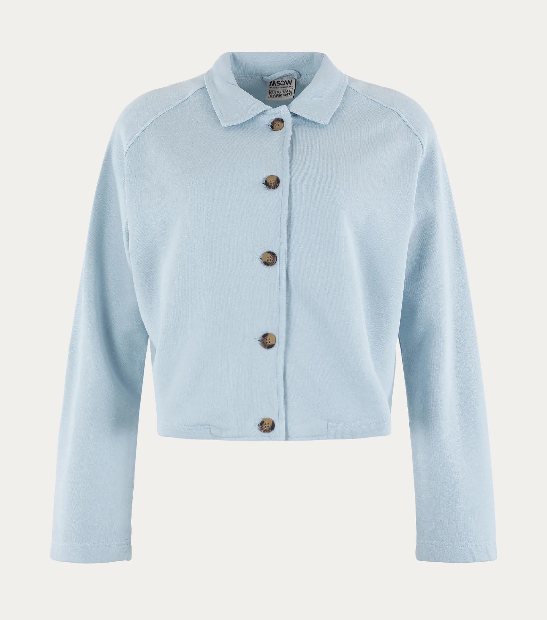 Dit vest van MOSCOW in de kleur light denim is een comfortabel en veelzijdig item. Gemaakt van zacht katoen met een normale pasvorm en geschikt om open of gesloten te dragen. Perfect voor zomerse looks.