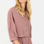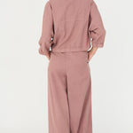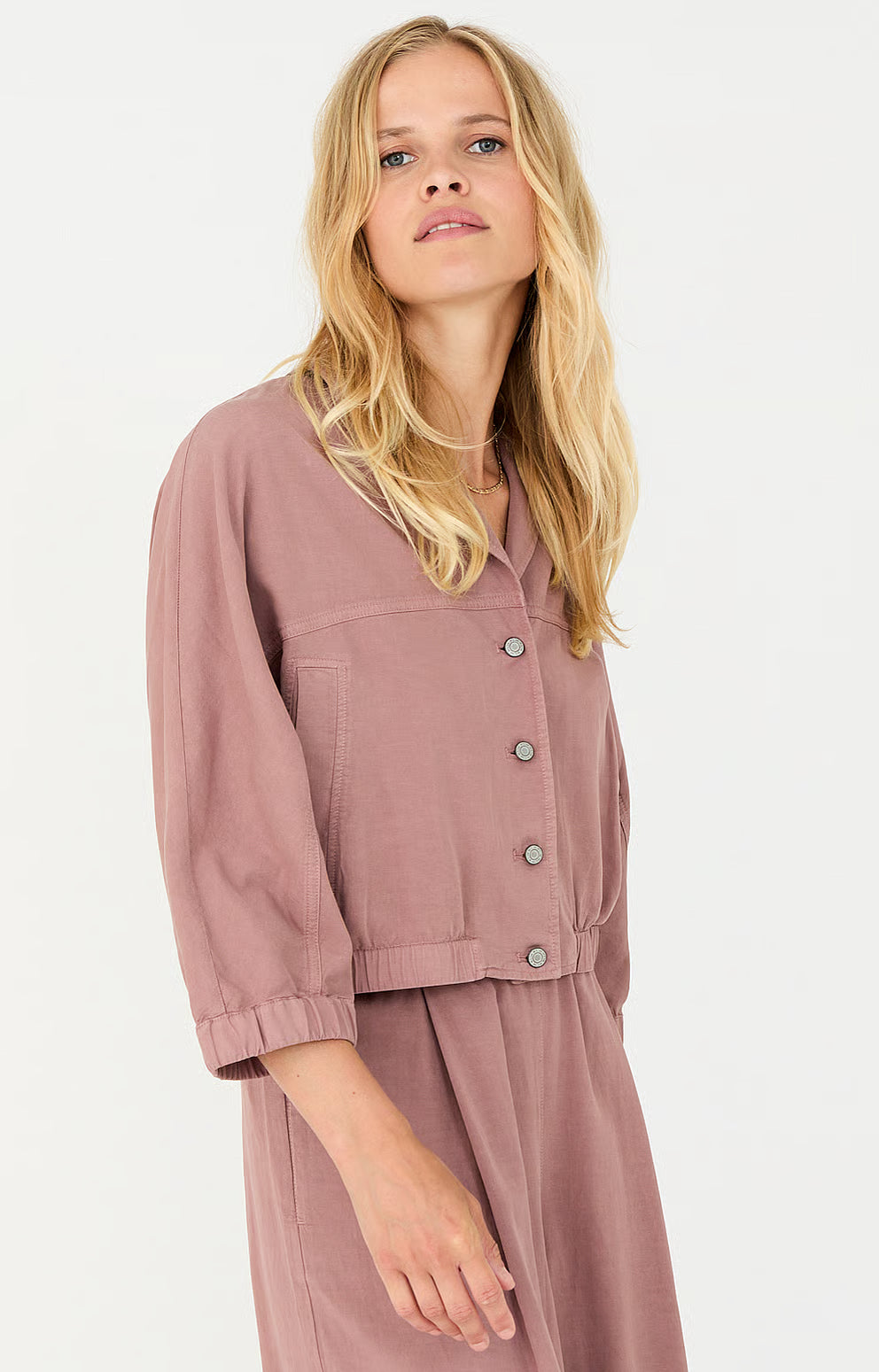 Deze luchtige Moscow blouse in blush is gemaakt van een comfortabele mix van Tencel, katoen en linnen. Het boxy, kortere model met V-hals en knoopsluiting geeft een moderne, vrouwelijke look. De driekwartmouwen met elastiek maken de blouse ideaal voor lente en zomer.