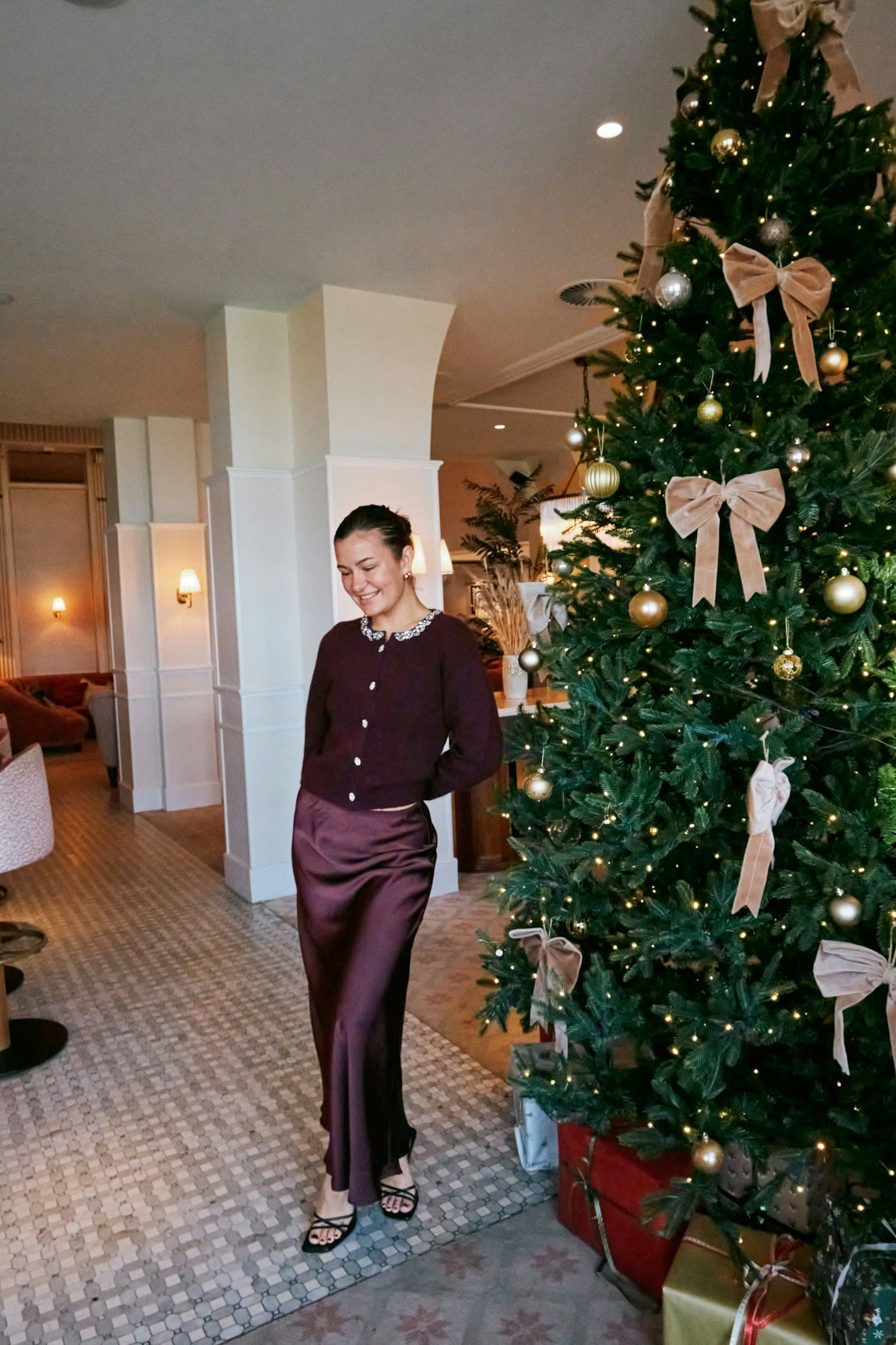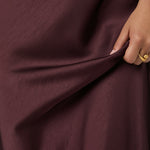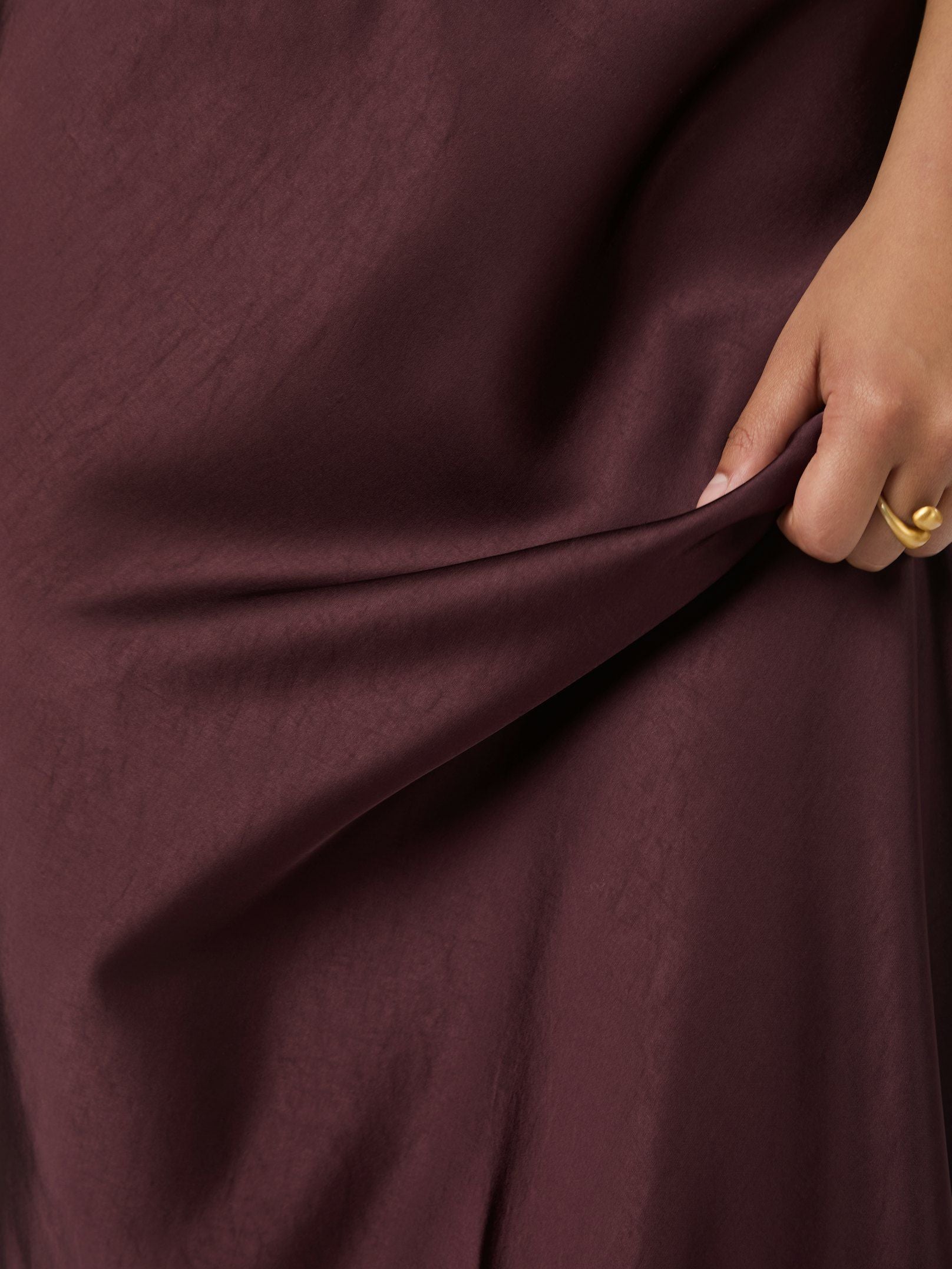 Lange rok met elastiek aan de binnenkant van de taille. De rok is schuin gesneden en heeft een zeer flatterende pasvorm. De kwaliteit is een mooie, gladde satijn.