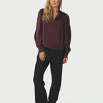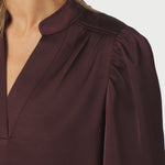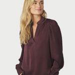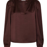 Mooie blouse met lange mouwen en een open halslijn aan de voorkant. Leuk te combineren met een elegante pantalon of stijlvolle jeans voor een meer alledaagse look. Het model is 176 cm lang en draagt maat 36.