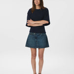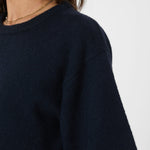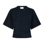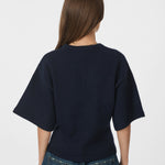 Gebreid T-shirt met stoere, boxy mouwen en verlaagde schouders. De pasvorm is getailleerd.