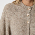 De Benuta Fluffy Knit Cardigan van Neo Noir is een heerlijk zachte, gebreide vest met een moderne, boxy pasvorm. De brede mouwen en decoratieve knopen aan de voorkant geven het ontwerp een stijlvolle en vrouwelijke uitstraling. De kwaliteit is zacht met een fluffy look, perfect voor een cozy maar modieuze outfit.