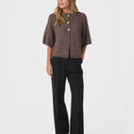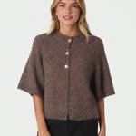 Boxy gebreide cardigan met wijde mouwen en leuke decoratieve knopen aan de voorkant. De kwaliteit is zacht en heeft een fluffy look.