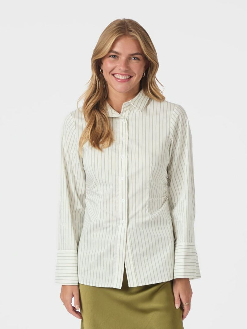 De Neo Noir Caroli Stripe Shirt is een stijlvolle, gestreepte damesblouse met klassieke kraag en knoopsluiting. Het shirt heeft een getailleerde pasvorm die je figuur mooi accentueert, en is gemaakt van een comfortabele katoenmix met lichte stretch.