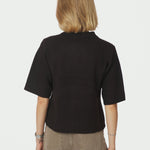 Deze Cunna Knit Blouse van Neo Noir is een stijlvolle gebreide damesblouse met een regular fit, korte mouwen en een klassieke polokraag met knoopsluiting aan de voorkant. De blouse is gemaakt van een zachte mix van polyester, acryl, wol en elastan voor comfort en een nette pasvorm.