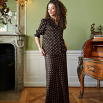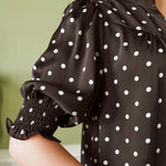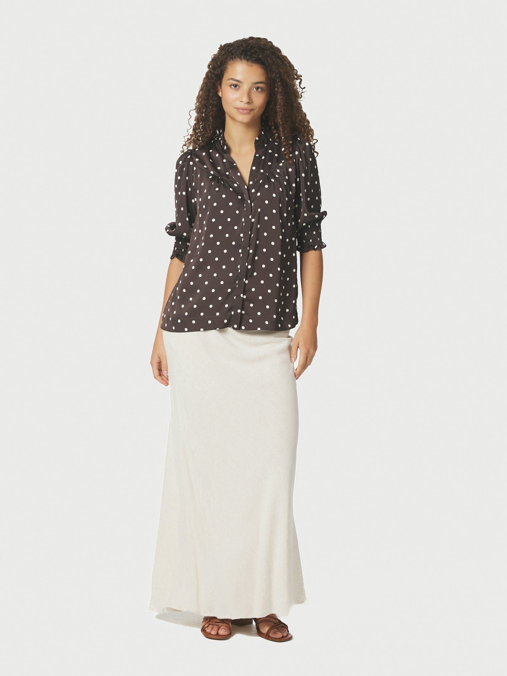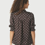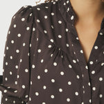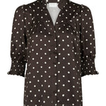 De Diana Dot Blouse van Neo Noir is een speelse, vrouwelijke blouse met all-over stippenprint in donkerbruin met witte dots. De blouse heeft een losse pasvorm en is gemaakt van 100% polyester, wat zorgt voor een licht en comfortabel draaggevoel.