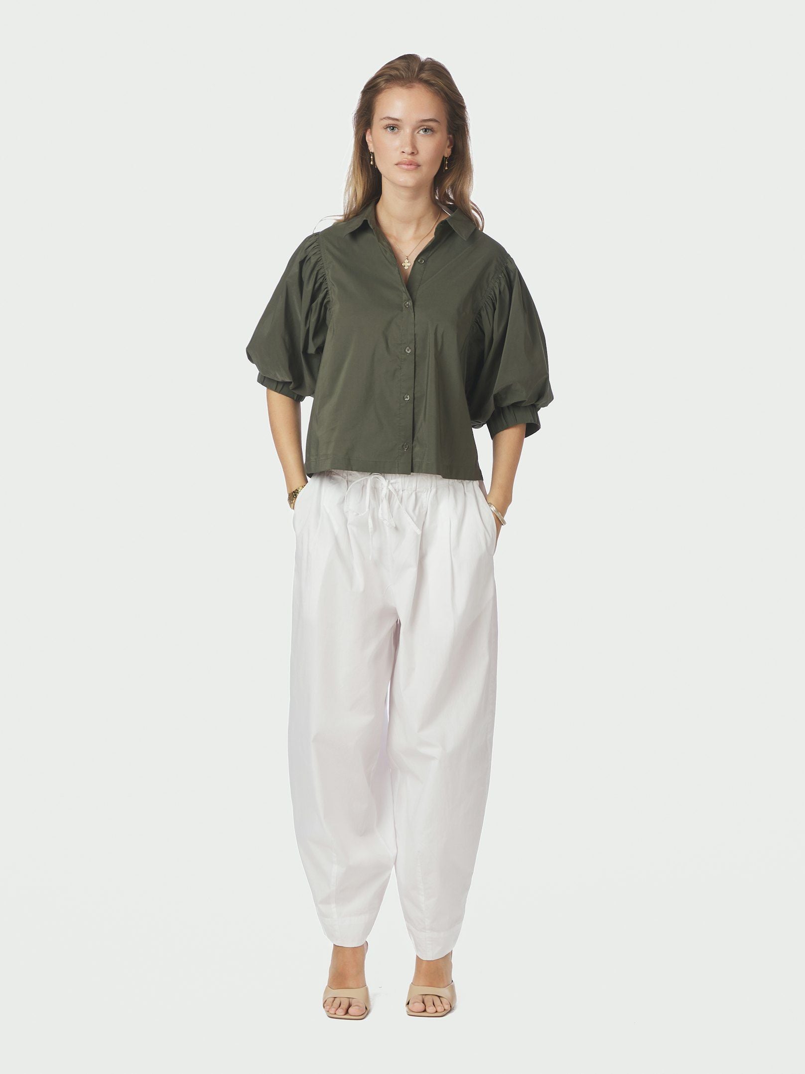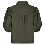 Deze blouse van Neo Noir combineert een klassieke uitstraling met een vrouwelijke twist. Het model heeft een kraag, knoopsluiting en opvallende pofmouwen met subtiele plooidetails voor een elegante, moderne look.