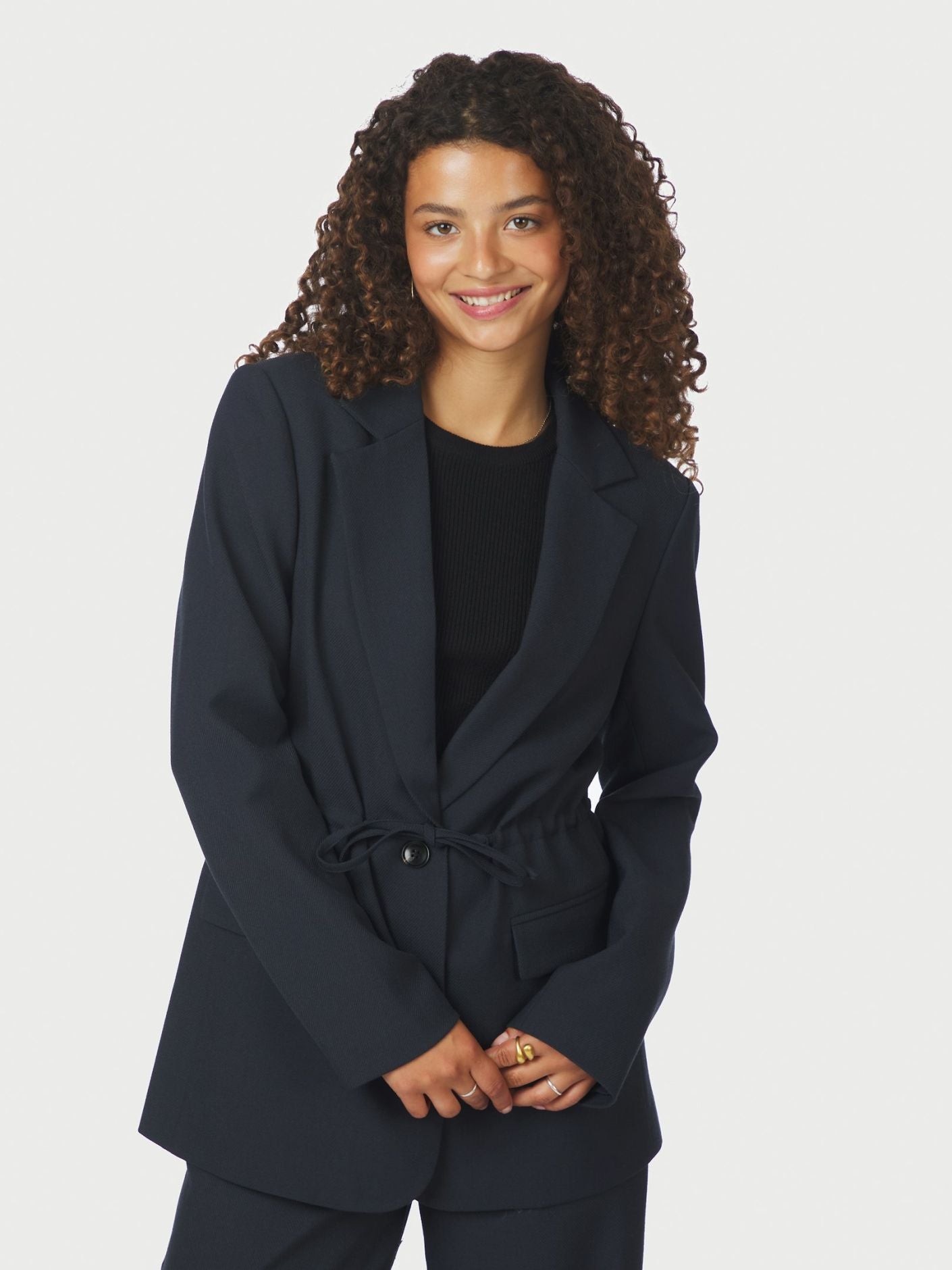 De Jemmie Blazer van Neo Noir is een echte musthave. Het strikdetail geeft een sportieve twist, terwijl de blazer een moderne, chique uitstraling behoudt. Uitgevoerd in tijdloos navy, perfect om het hele seizoen door te dragen.