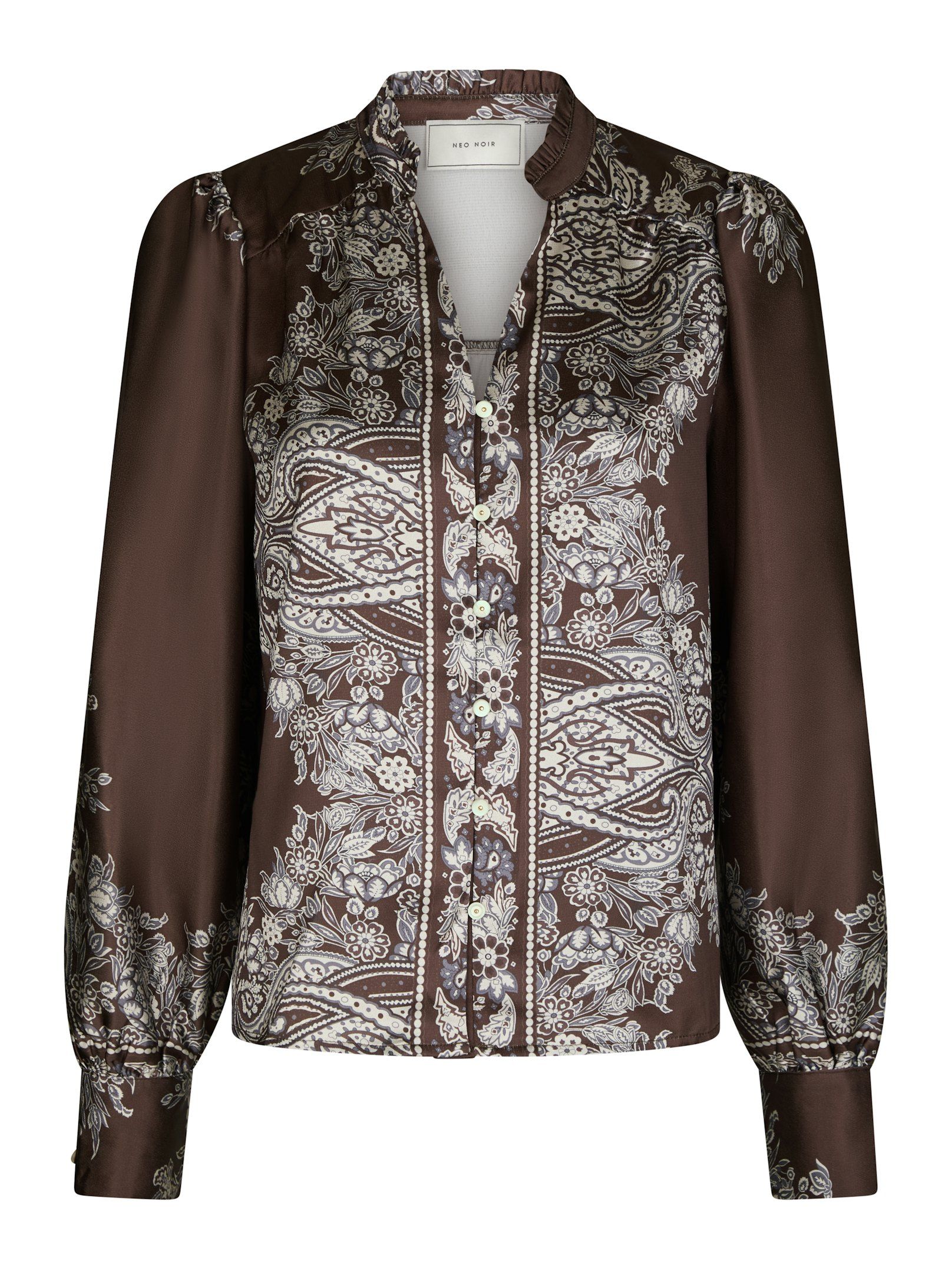 De vrouwelijke blouse van Neo Noir heeft een prachtige paisley print. Een echte eyecatcher in stijlvolle, neutrale tinten. De klassieke pasvorm, V-hals en decoratieve knopen geven de blouse een verfijnde en tijdloze uitstraling.